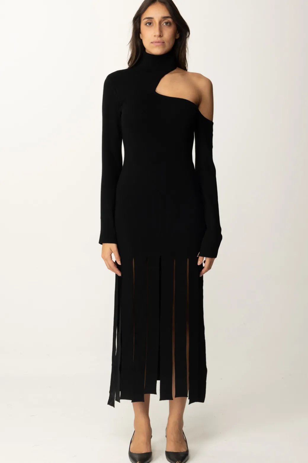 Audace e contemporaneo, questo abito Akep in maglia presenta un intrigante dettaglio cut-out su una spalla, un fit slim e una gonna caratterizzata da frange a pannelli che donano movimento e un tocco trendy. Perfetto per chi vuole osare con un look glamour e originale.