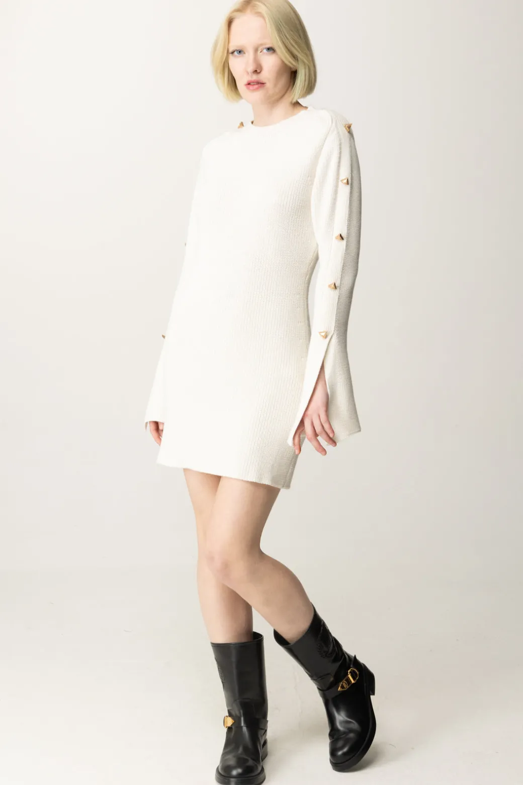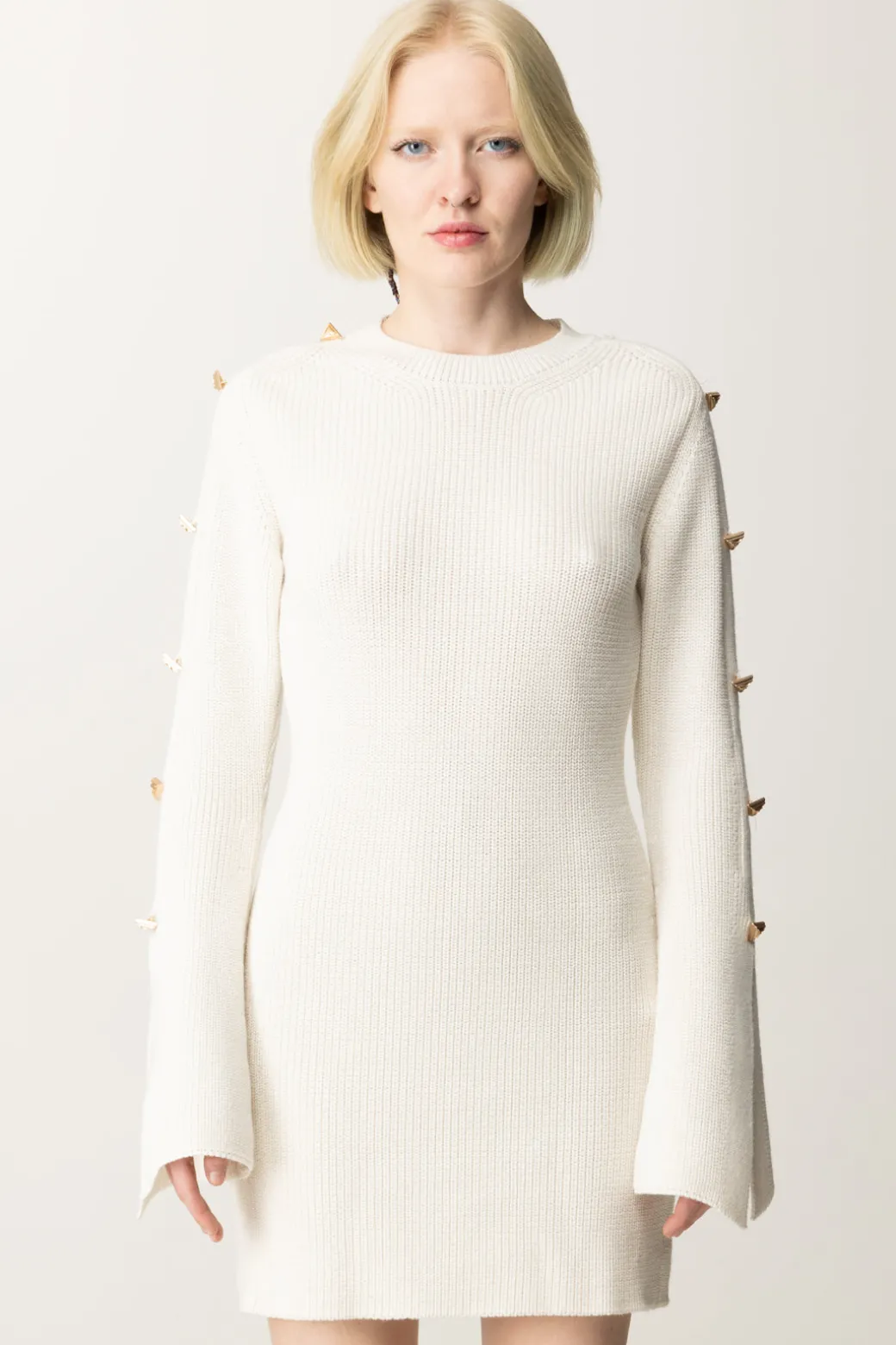 L’abito Akep dalla texture in maglia dal fit aderente, è impreziosita sulle maniche da una fila di bottoni gioiello applicati lungo tutta la manica che conferiscono un look originale e contemporaneo. Perfetto per un outfit casual ma ricercato, si abbina bene con stivali alti e una borsa a tracolla dal design essenziale.