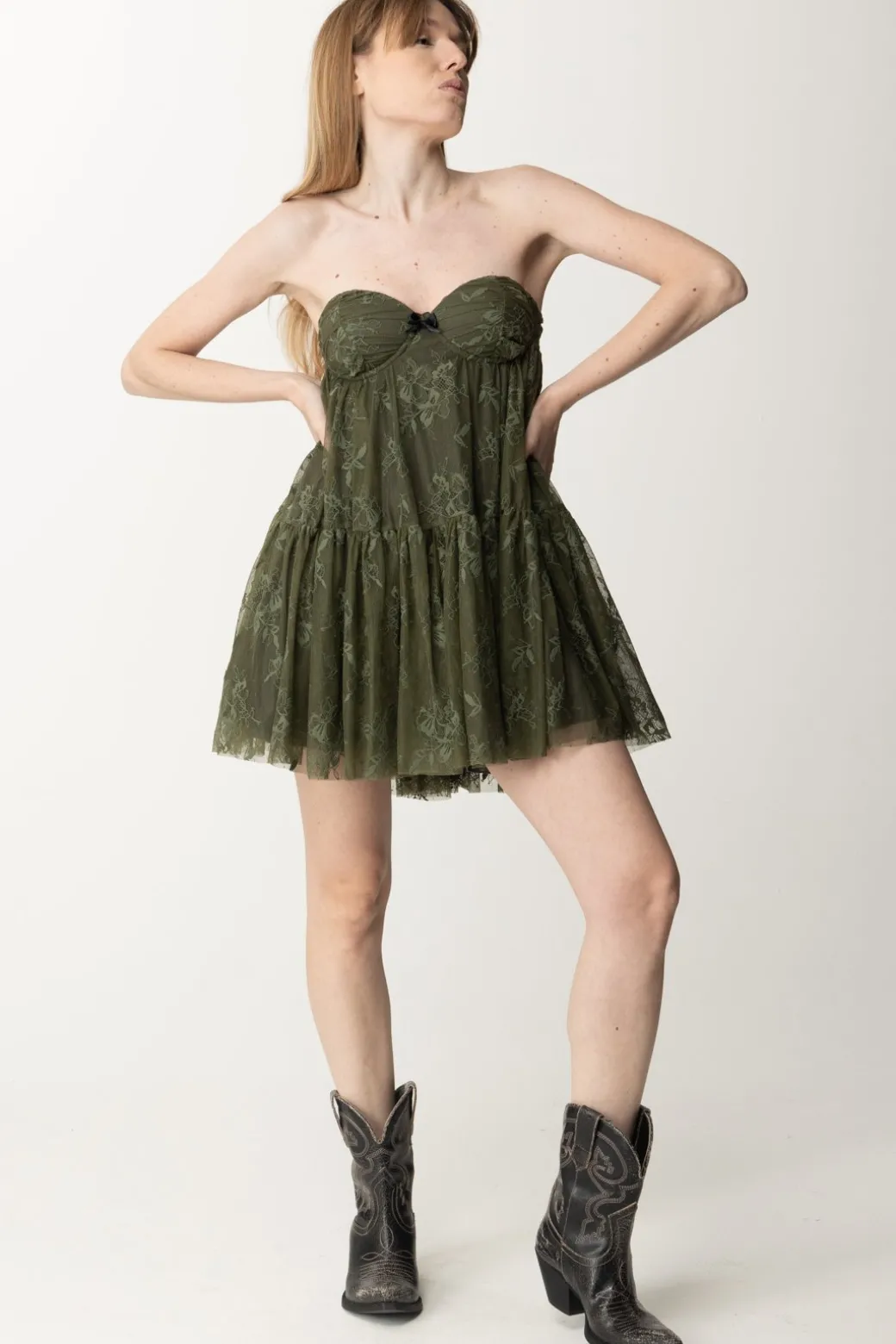 Sarai tu a decidere che anima dare a questo abito Aniye By svasato in stile baby doll: il pizzo romantico e il taglio coppe cambiano immediatamente mood se invece di un sandalo minimal abbini i biker del brand e una cintura al punto vita. E tu, in che modo indosserati questa meraviglia?