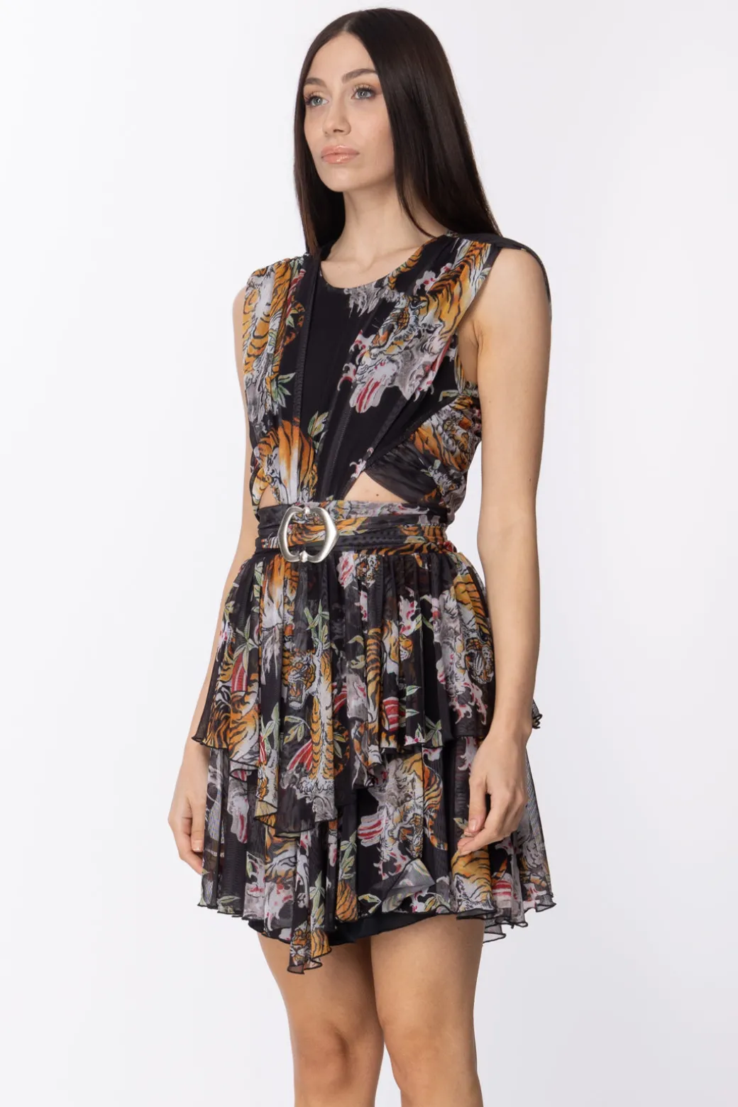 Abito mini Aniye By perfetto per il mood estivo! I suoi piccoli dettagli segnano la sua unicità, come le aperture sui fianchi, la cintura in vita con fibbia e una gonna volant asimmetrica tutta svolazzante! Un look fresco, leggero e colorato, perfetto per i pomeriggi da cocktail o accessoriato con eleganza per la sera!