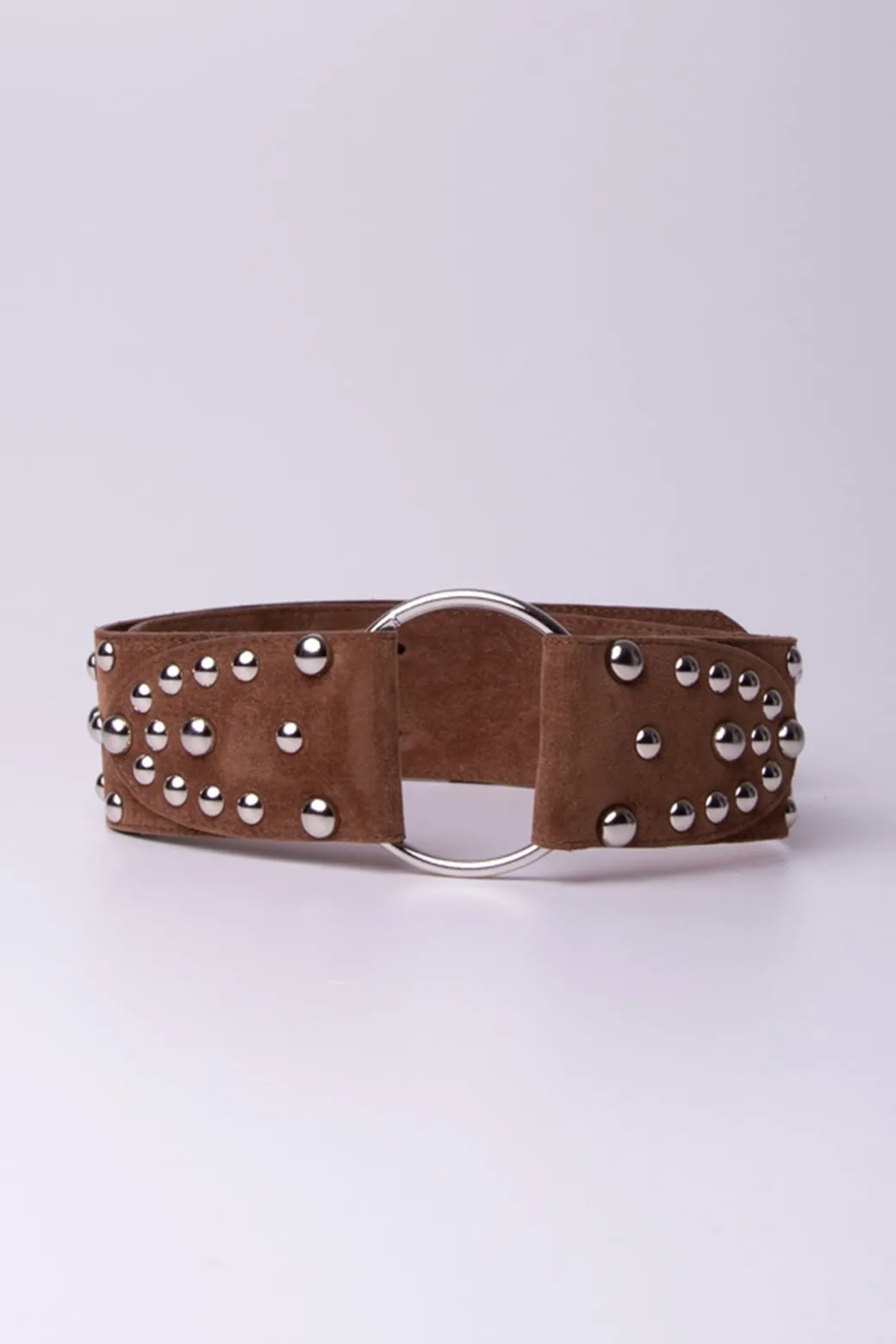 Cintura Anyeby per enfatizzare con stile sbarazzino e grintoso ogni tuo look: mini borchie presenti lungo tutta la cintura e fibbia centrale ad anello. L’accessorio must da avere nel tuo guardaroba!