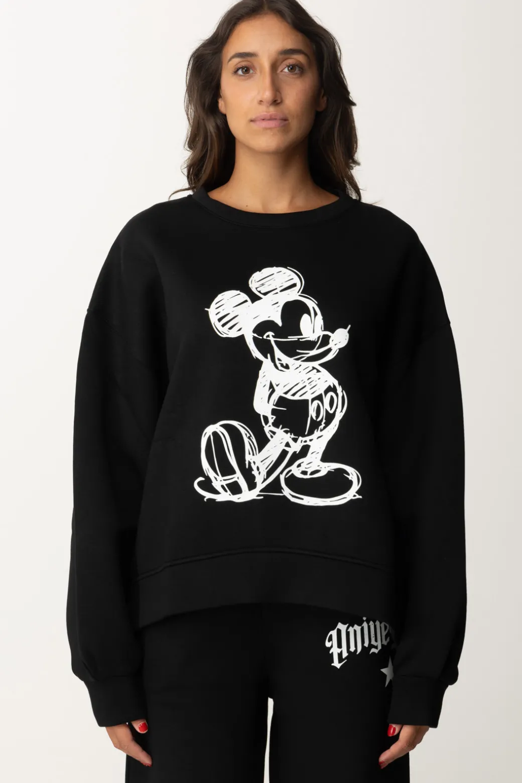 Una stampa che mette un po’ di nostalgia, ma utile a riportare un po’ di ironia e childhood nei tuoi outfit: con questa stilosissima felpa Aniye By hai un’ottima scusa per tornare a indossare Mickey Mouse! Realizzata in neoprene, il fit è ampio e il taglio asimmetrico più corto sul fronte, e le maniche a palloncino sottolineano la morbidezza del modello. Perfetta per il tempo libero e per tutte le volte in cui vorrai farti coccolare dai tuoi look.