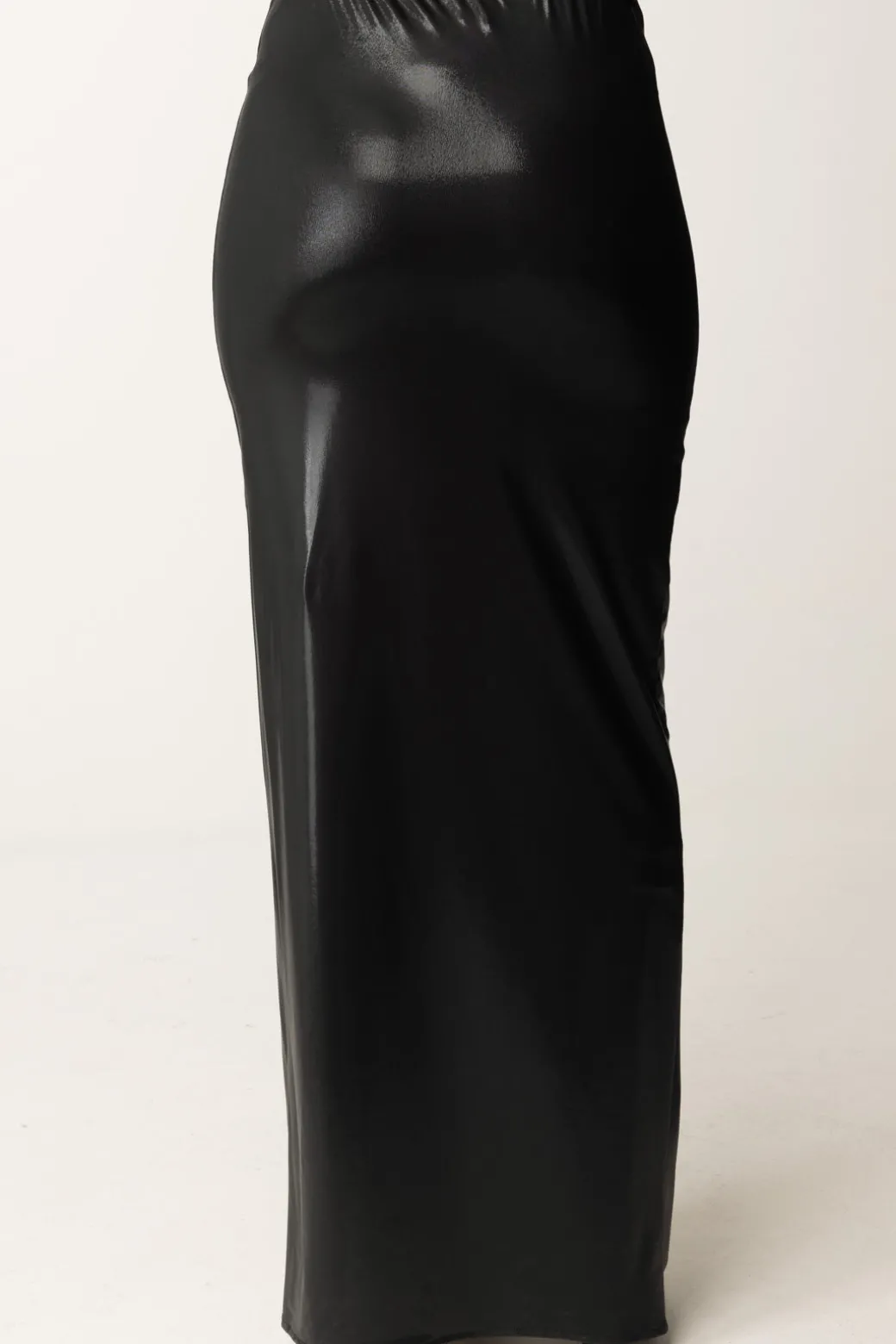 Una gonna Aniye By che non nasconde nessuna delle tue forme, anzi, le esalta con sensualità! Realizzata in jersey laminato, fasciante ai fianchi dove presenta anche un fitto drappeggio, e con un profondo spacco laterale che ti agevola nei movimenti e carica di charme il tuo look: e tu, stai già immaginando con cosa abbinarla? Noi ti suggeriamo il top con lo stesso tessuto!