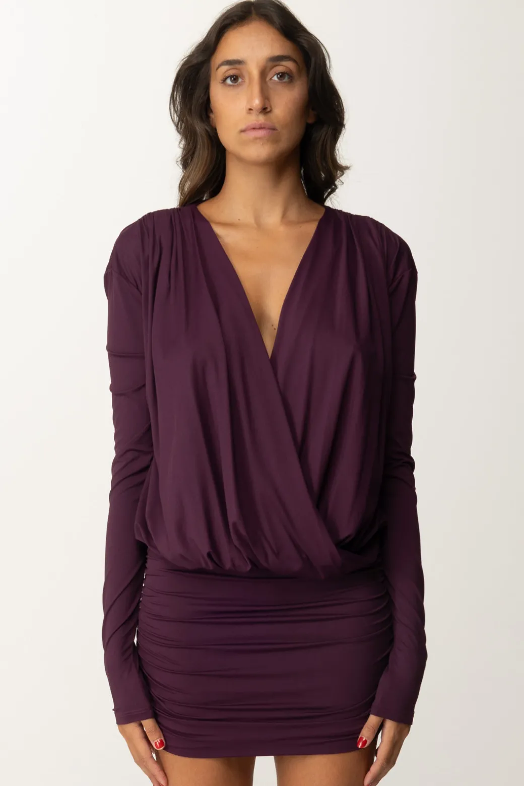 Un mini abito Aniye By che combina insieme morbidezza e aderenza, alternando l’ampio drappeggio del top con scollo a incrocio con la gonna arricciata fasciante ai fianchi. Semplice e femminile, un abito che come ogni proposta del brand puoi indossare in tantissimi modi: in versione rock, con anfibi o stivaletti, e in versione lady, con sandali e decolletes.