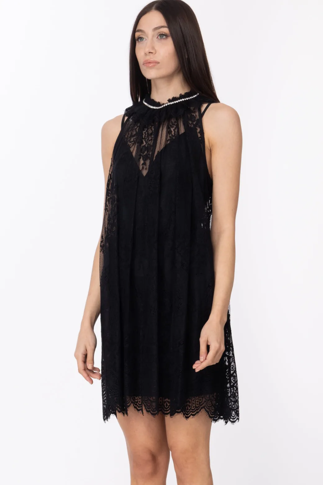 Sexy, è sexy: con i suoi giochi di trasparenze, questo mini abito in pizzo Aniye By è un’ode alla femminilità più sensuale. Smanicato e con orlo smerlato, il coletto attira l’attenzione con la sua arricciatura e l’appplicazione bijoux. Aggiungi una cintura al punto vita per modellarlo al meglio sulla silhouette e slancia l’insieme con una decolletes.