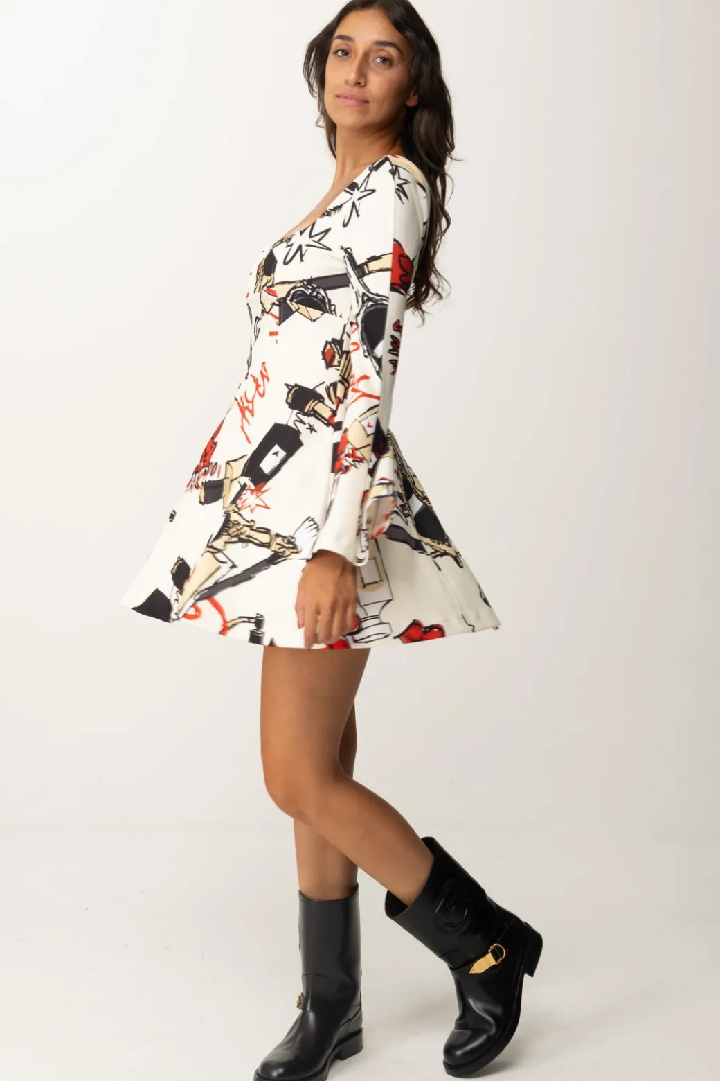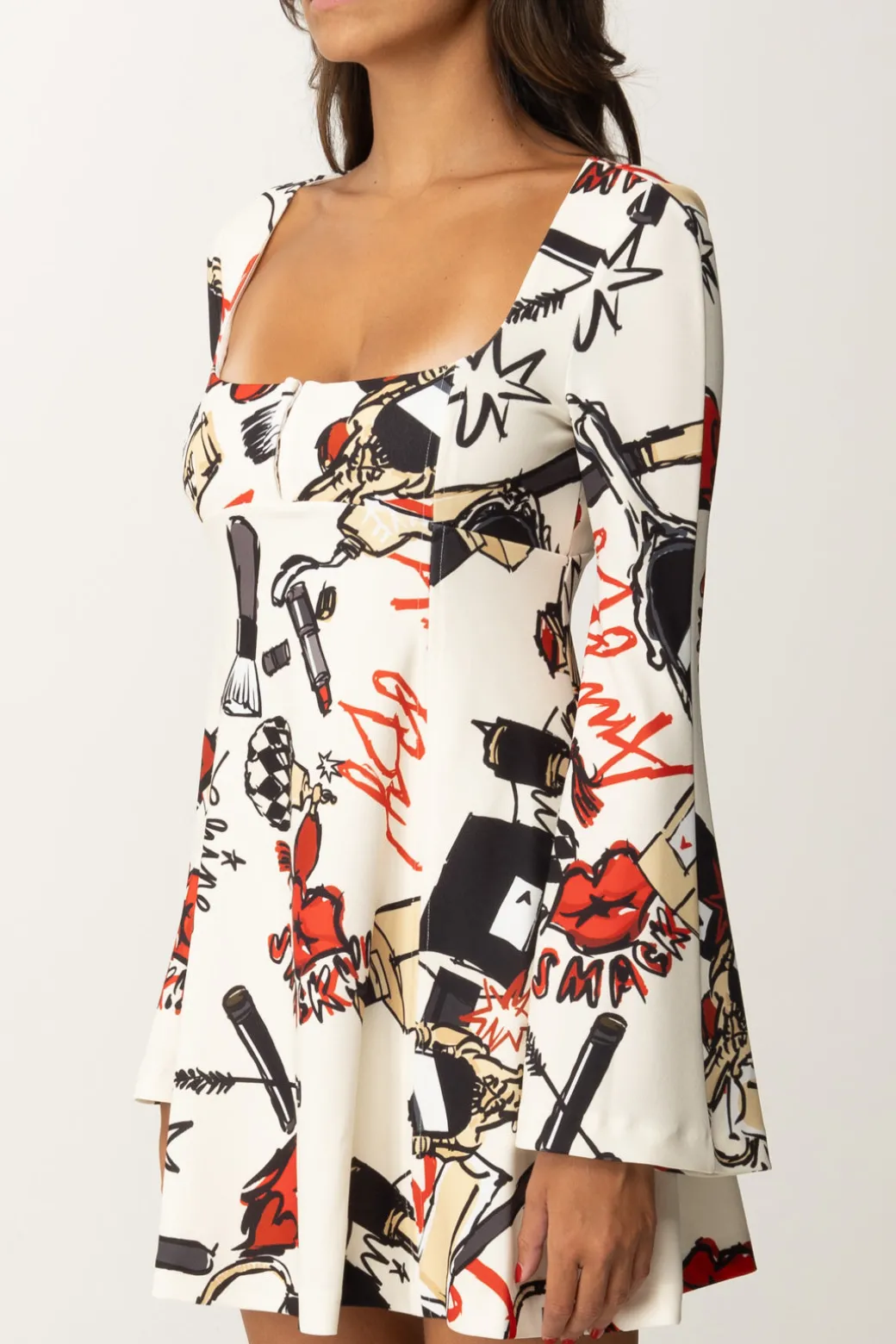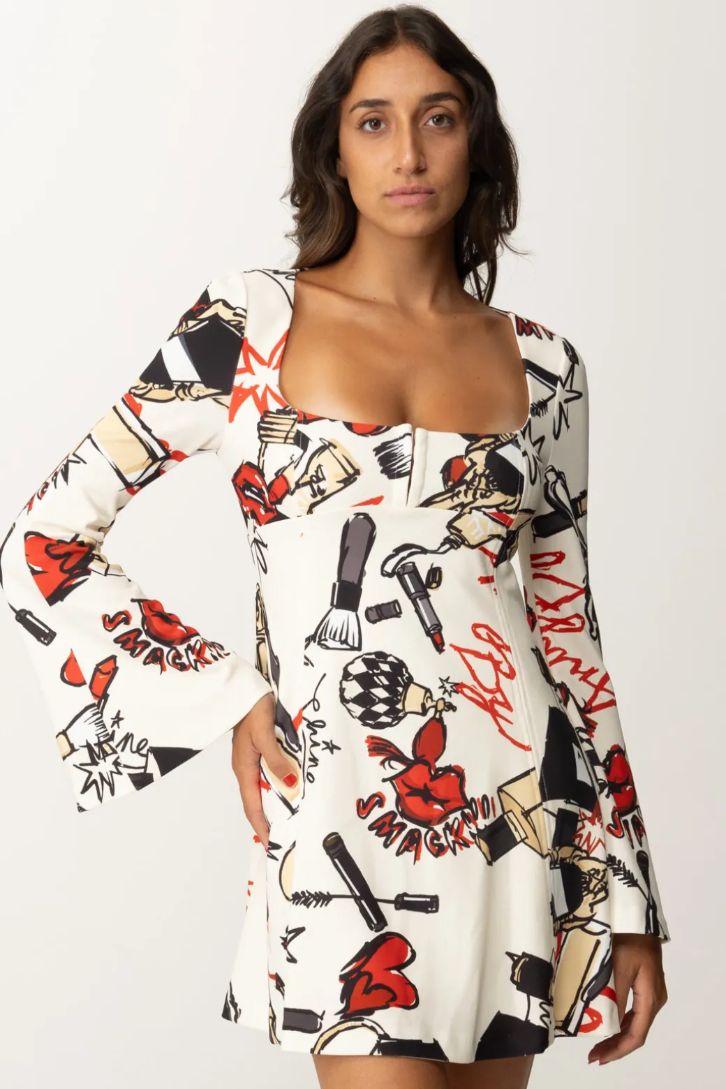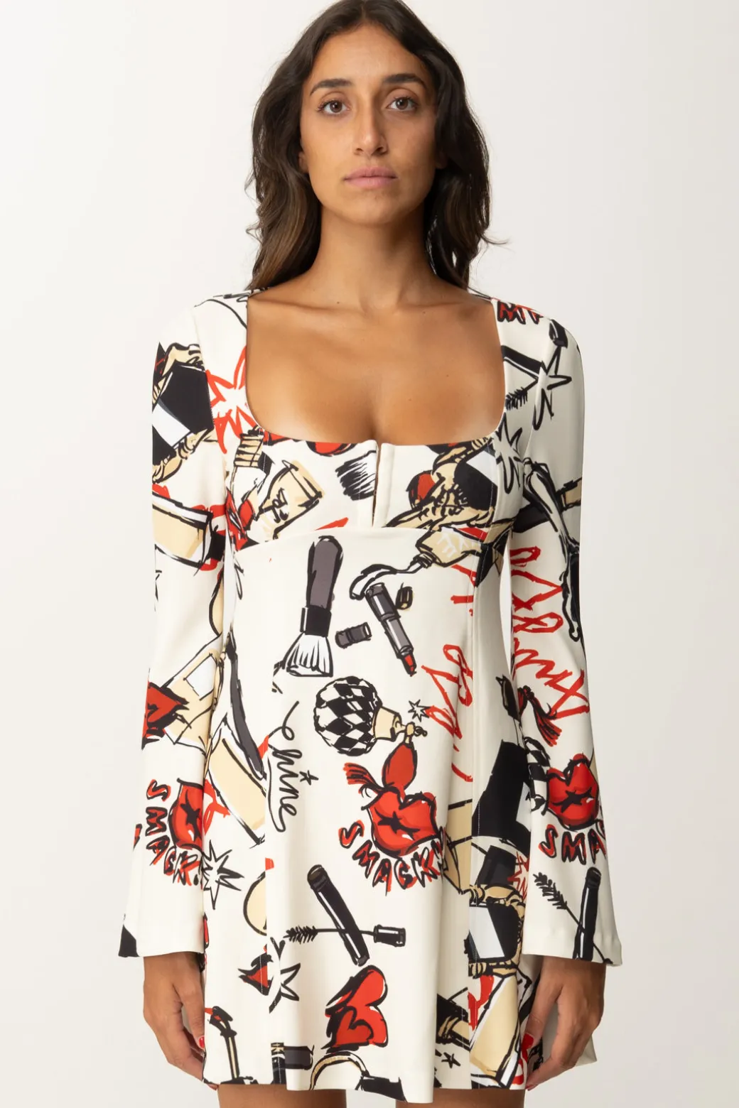 Cosa rende questo mini abito Aniye By così interessante? Dai un’occhiata alla stampa: una stilosa rirpoduzione di tutto il necessaire di bellezza, completato da labbra rosse pronte a regalare baci. A chi? Ma a te stessa allo specchio innanzitutto, perchè sarai davvero irresistibile vestita così! Ampia collatura e maniche lunghe che riproducono la svasatura dell’abito, un outfit divertente da indossare con anfibi tanto quanto con tacchi alti eleganti per i tuoi party di stagione.