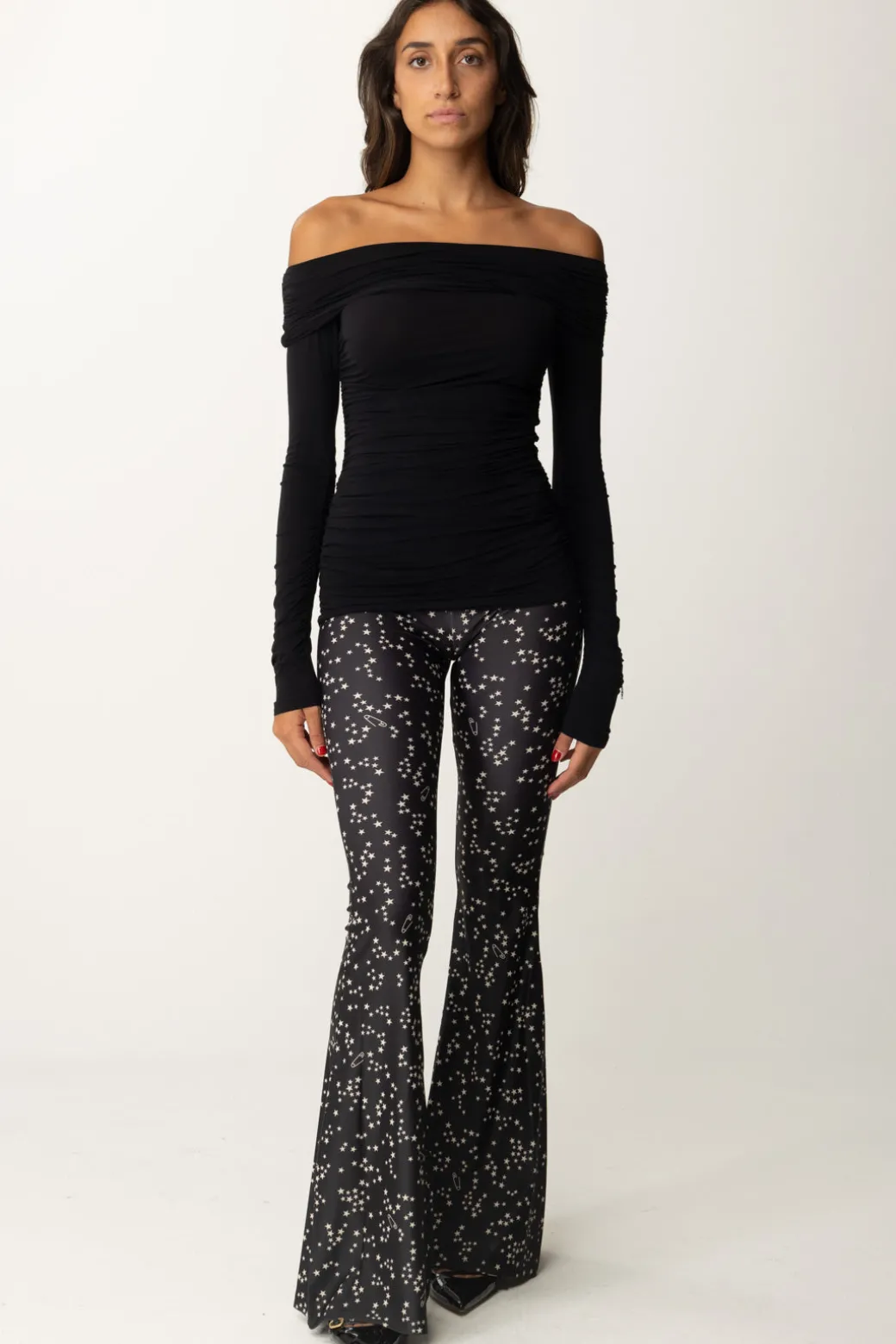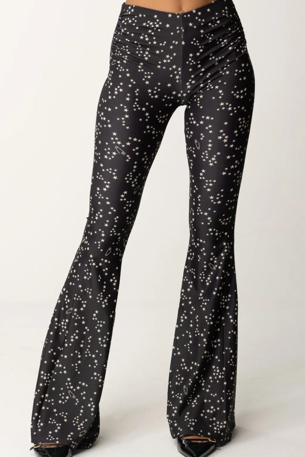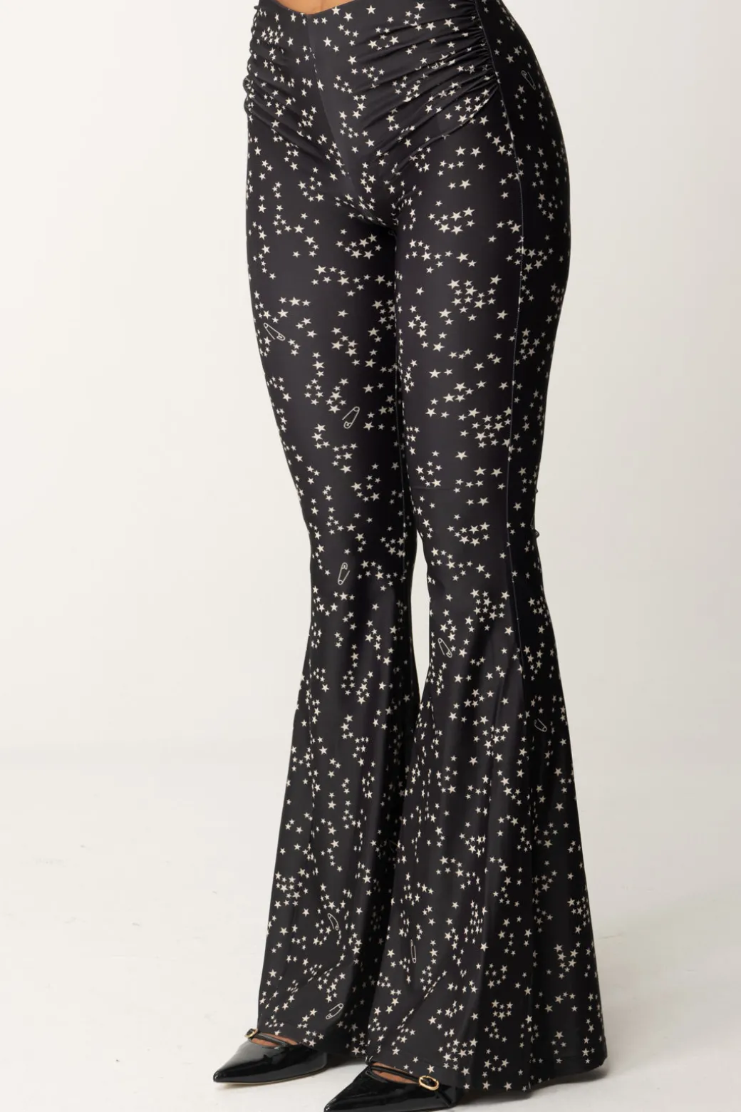 Non potevano mancare quelli che ormai sono un item iconico del brand: i leggings a zampa Aniye By, realizzati in lycra e proposti con le stampe di stagione. Punto vita e fianchi con lievi arricciature, un capo perfetto per valorizzare la silhouette per outfit di carattere e sicuramente attuali.
