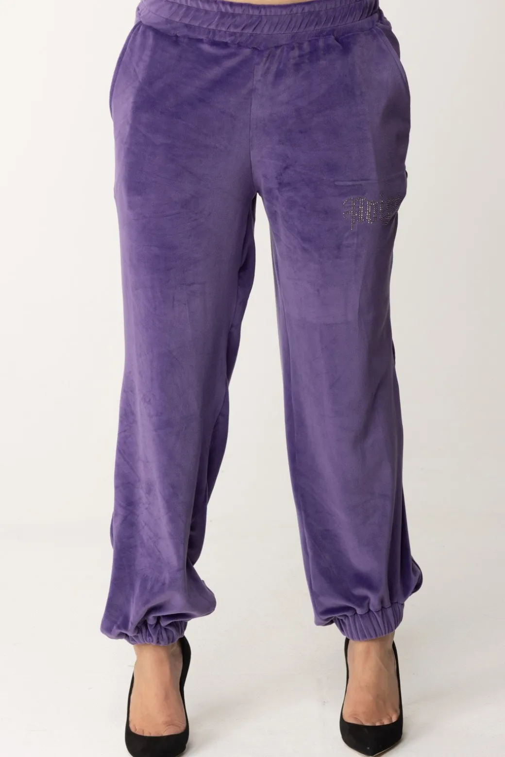 Un mix di comfort e stile con questi Pantaloni jogger Aniye By in ciniglia, impreziositi da un logo in strass, vita elasticizzata e polsini alla caviglia che garantiscono un look dinamico e comodo per uno stile sporty-chic.