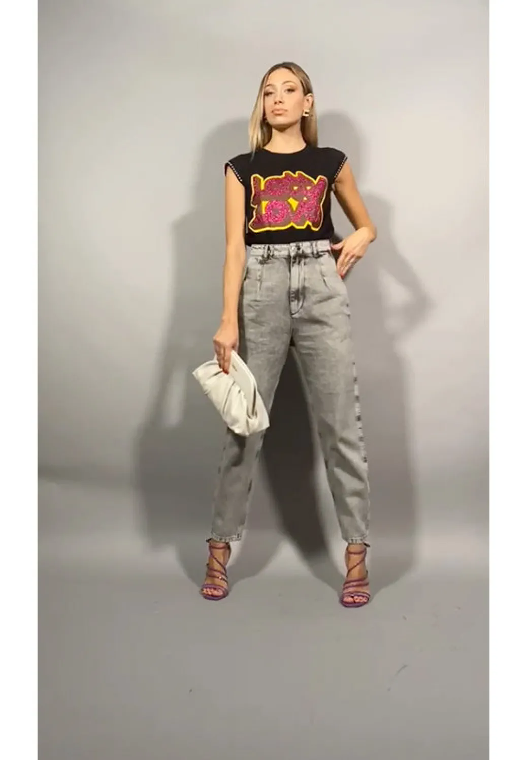 Stampa glitterata per scintillare dalla mattina alla sera con questa divertente t-shirt Aniy By con le mezze maniche puntellate da borchiette. Come ci piace? Con tenute casual e capi a vita alta che diano ancora più risalto al top di questo indumento così particolare.