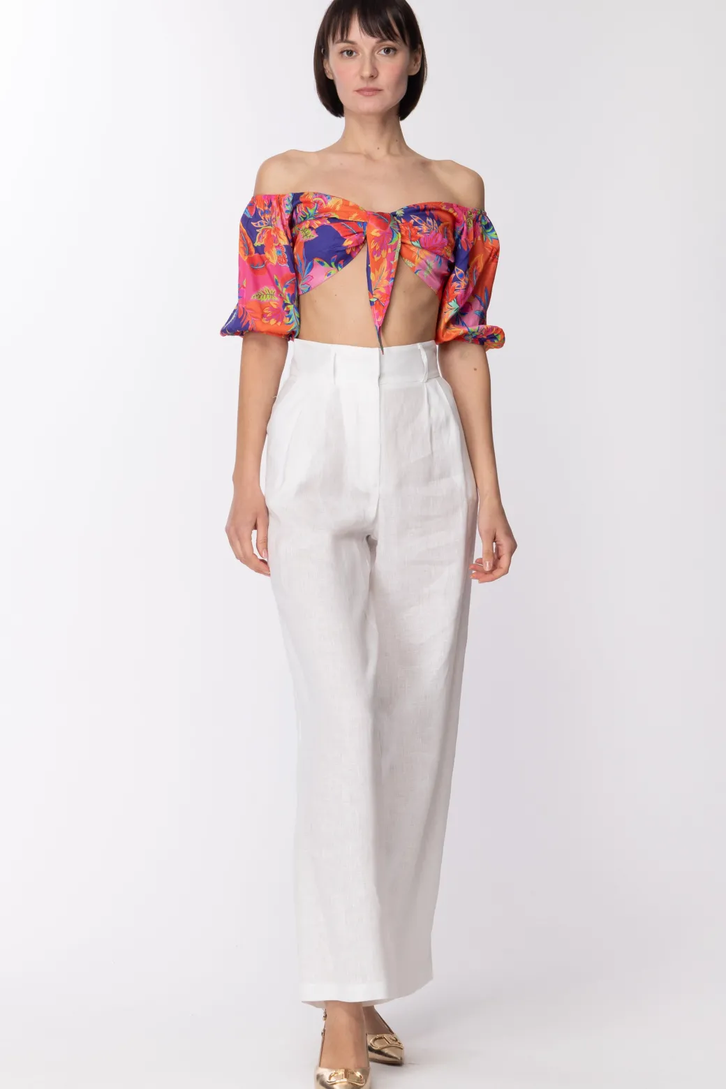 Dramèe Crop Top con Fiocco e Stampa TropicalSTAMPA TROPICAL