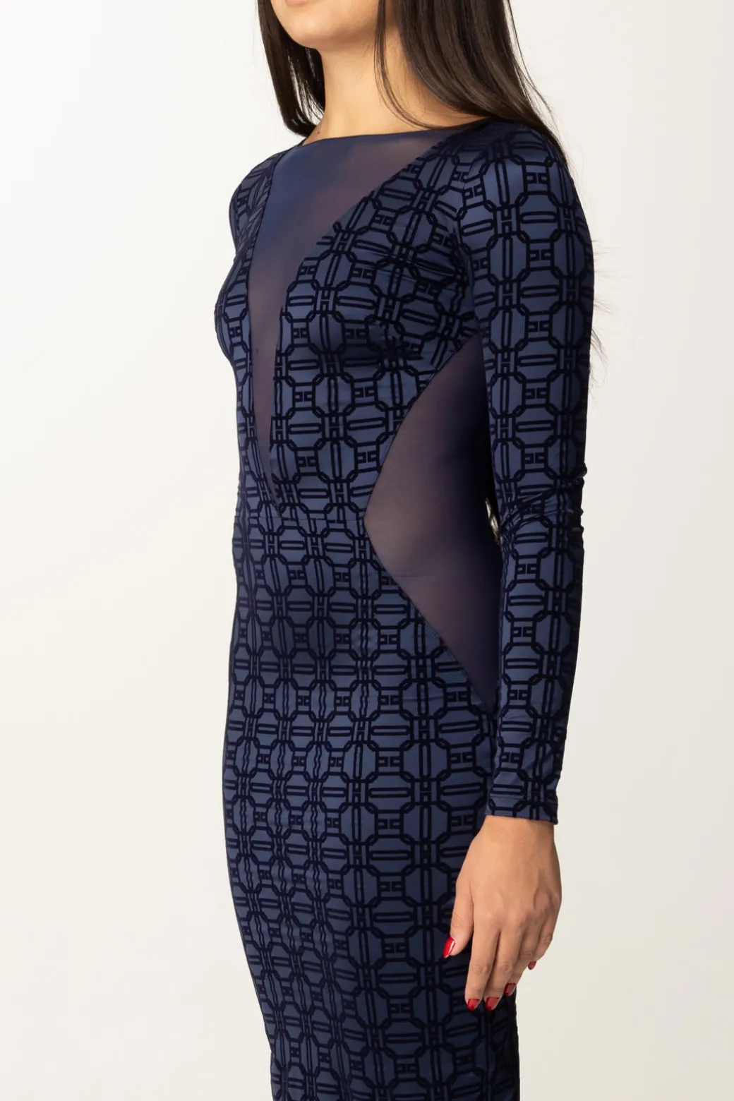 Questo abito Red Carpet Elisabetta Franchilungo e avvolgente esalta la silhouette con eleganza e femminilità. Realizzato in lycra flock all-over con dettagli trasparenti in tulle sullo scollo e sui fianchi. Ideale per eventi serali dove il fascino è un must. Abbinalo a scarpe a punta chiuse e una mini clutch.