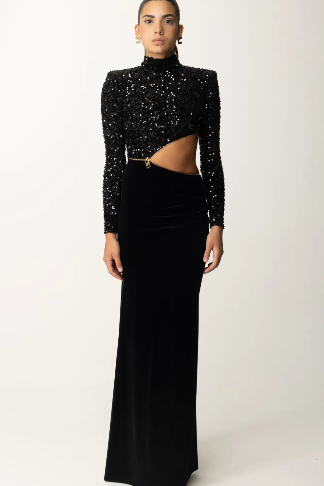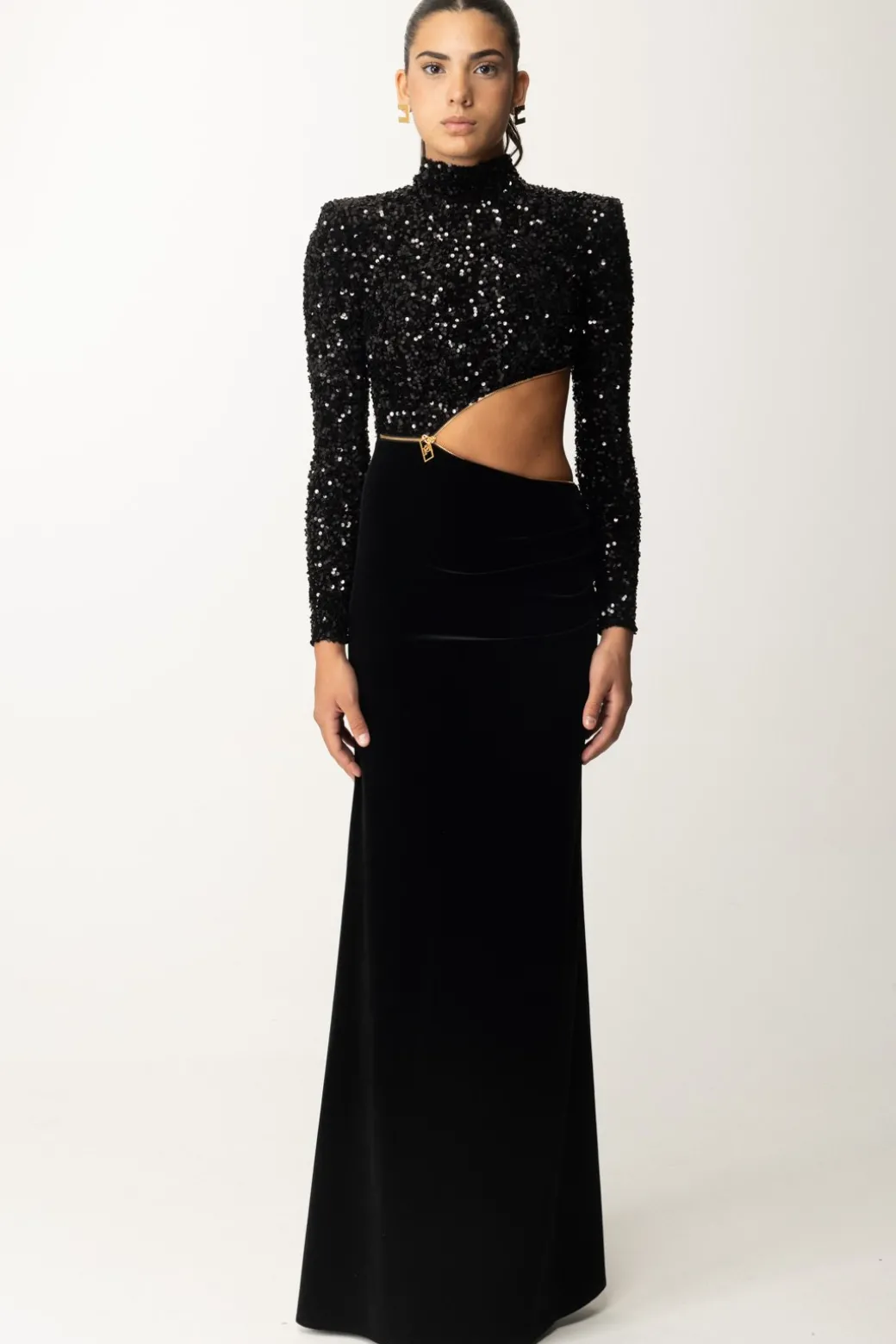Audace e moderno, questo abito Red Carpet Elisabetta Franchi è realizzato in ciniglia ed è illuminato nella parte superiore da un top interamente in paillettes, il cut-out con zip crea un effetto dinamico e audace, mentre la gonna a sirena aggiunge un’allure femminile irresistibile. Aggiungi orecchini a cerchio e tacchi alti per un ultimo tocco di glamour.