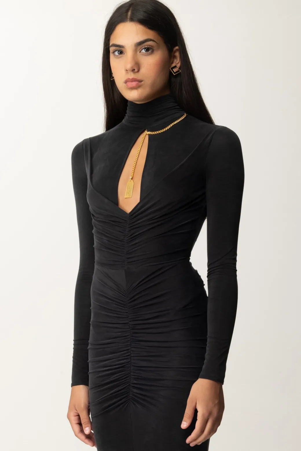 Come una diva per i tuoi Red Carpet: non potrai sentirti da meno, con un abito Elisabetta Franchi così! Jersey Cupro che avvolge la silhouette e la ammorbidisce con drappeggi fronte e retro, equilibrando il tutto con la svasatura della gonna del modello a sirena. Il petto è caratterizzato da un cut-out arricchito da un accessorio collana in metallo dorato, mentre il retro presenta un profondo scollo a goccia e un piccolo strascico sul fondo: non gli manca proprio niente per farti distinguere.