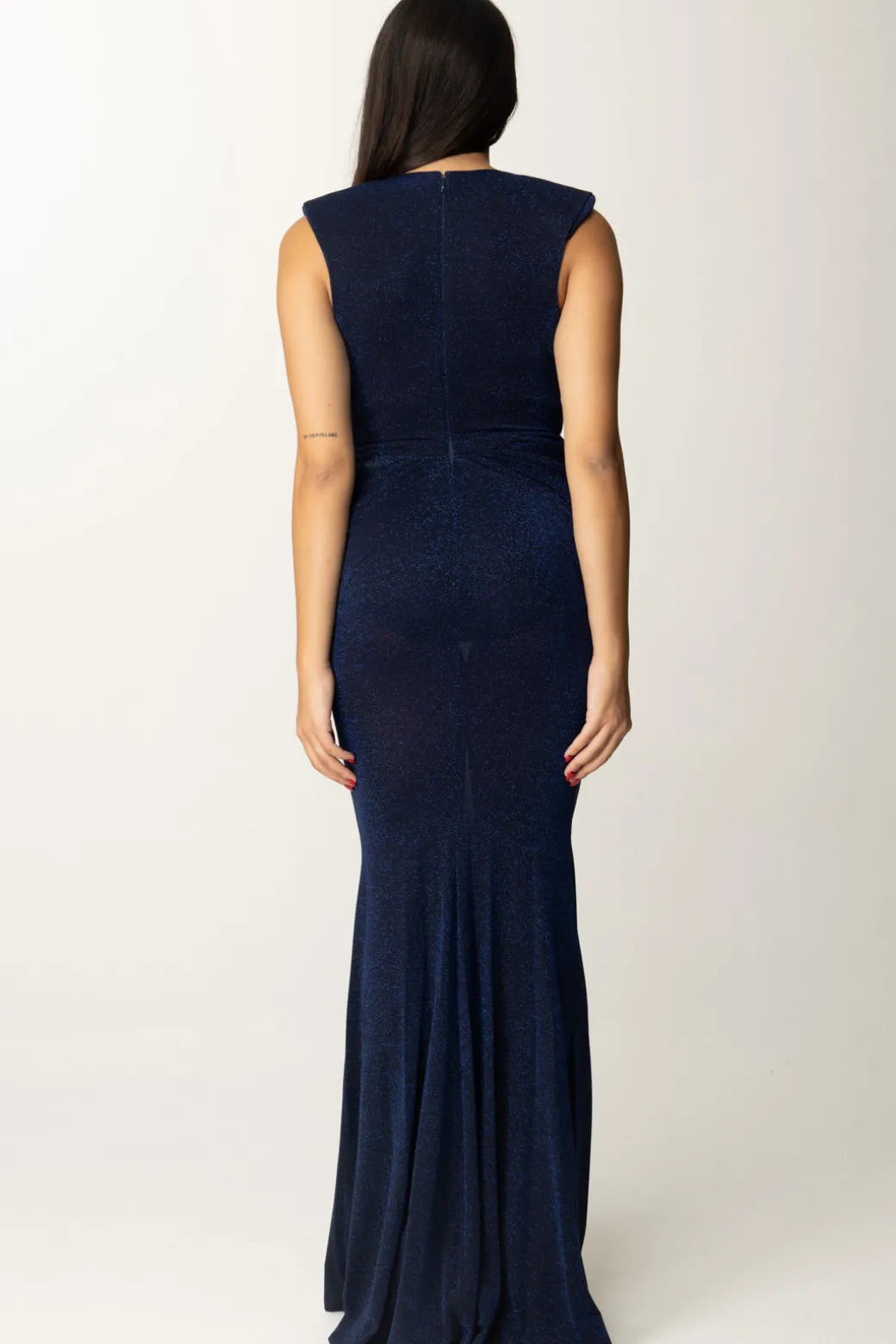 Questo elegante abito Red Carpet Elisabetta Franchi con una silhouette fasciante e un tessuto in lurex che aggiunge un tocco sofisticato e glam. Il design presenta una profonda scollatura che lascia intravedere il reggiseno in tulle e una fascia con placca logata gold che evidenzia il punto vita e crea un delicato drappeggio. Perfetto per eventi serali o cerimonie, abbina una clutch e sandali a tacco alto per un effetto raffinato.