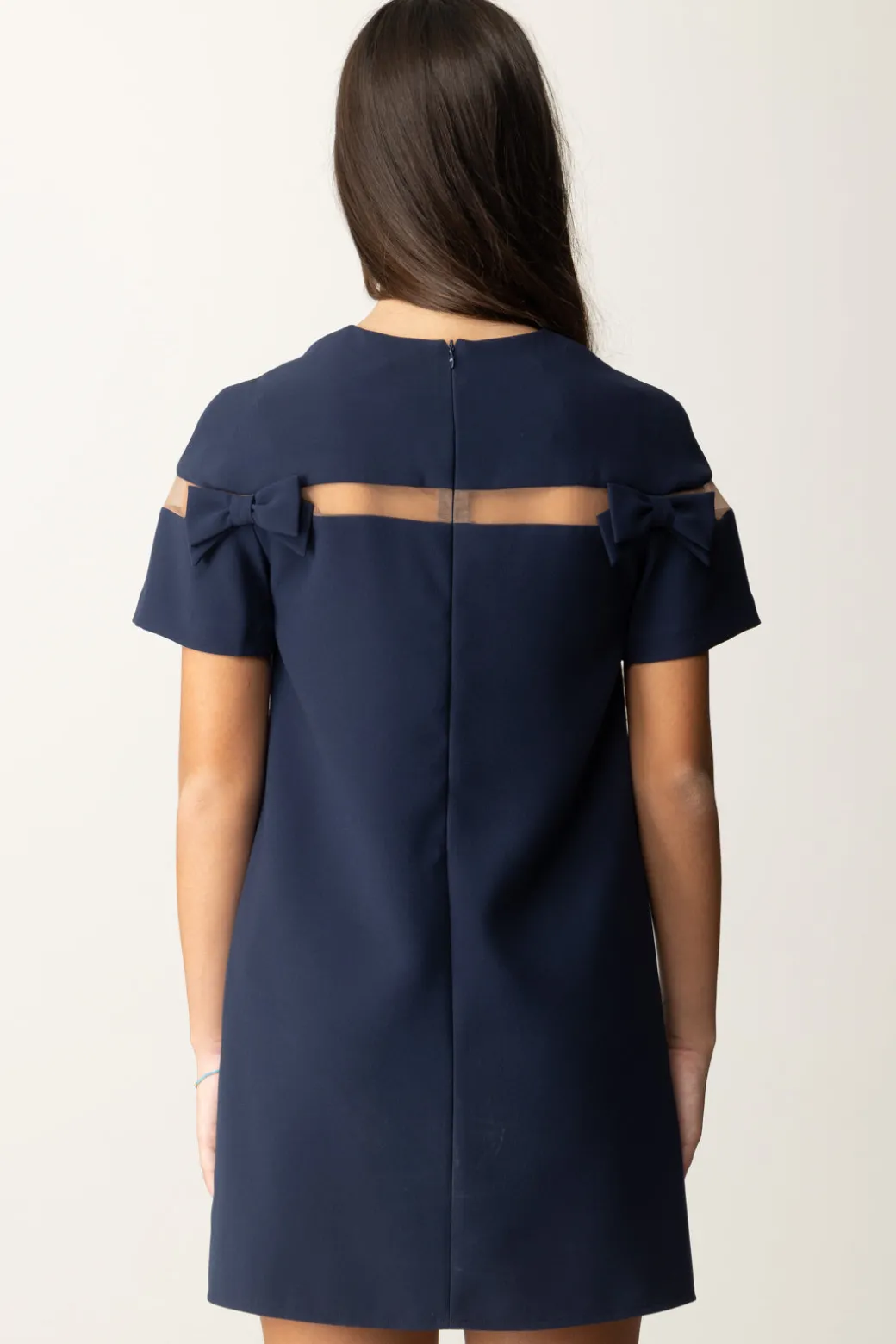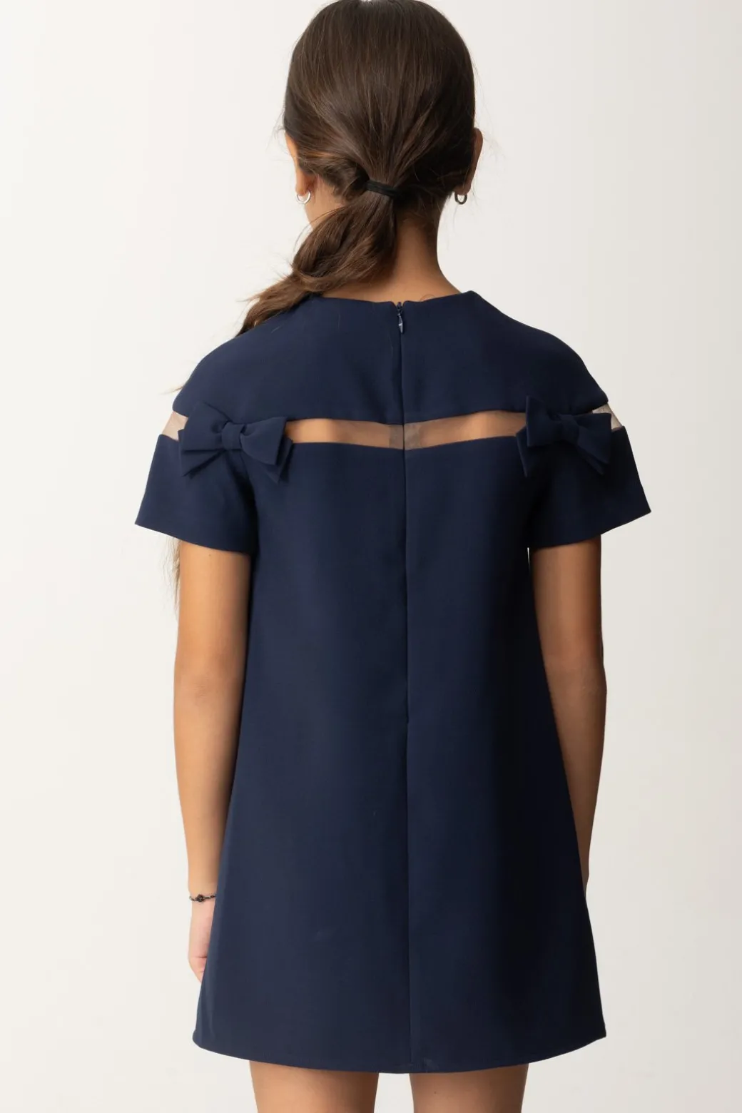 Fiocchetti bon ton si alternano ad inserti in tulle trasparenze che creano un effetto cut-out nella parte alta di questo bellissimo abito La mia bambina Elisabetta Franchi, ideale per gli eventi di stagione. Elegante e chic, completa il suo outfit con una scarpetta delicata, come un mocassino o una ballerina, che renda ancora più aggraziata questa mise.