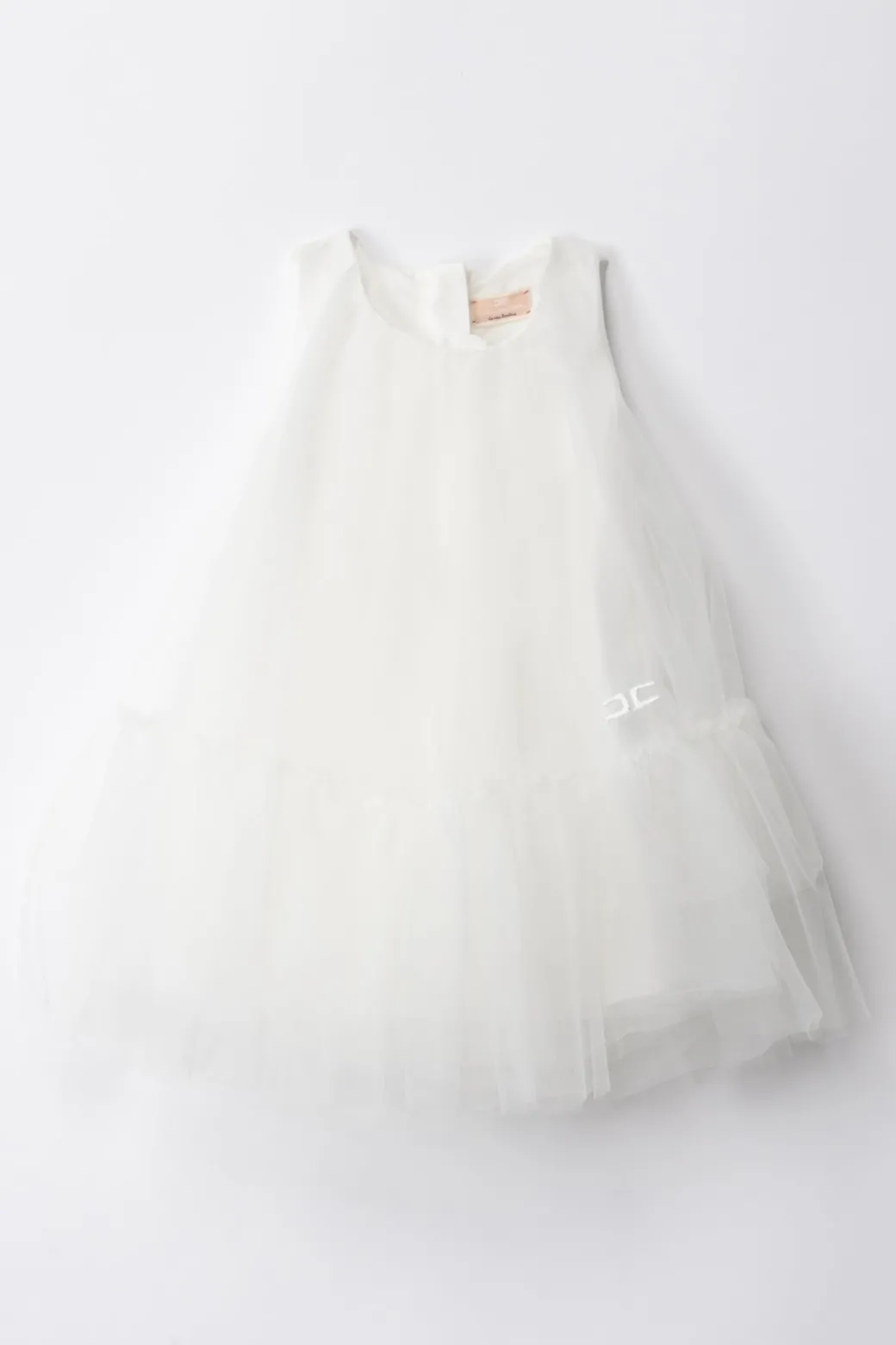 Elegante come una ballerina, eterea come una nuvola: e poi si sa, le bambine vestite di tulle fanno sempre un certo effetto! Quindi non rinunciare a questo abito Elisabetta Franchi La mia Bambina, perfetto per le cerimonie che verranno in questa stagione, con il suo design svasato e delicato realizzato in tulle con balza sulla gonna e logo ricamato in tinta: sarà un sogno, il tuo sogno!