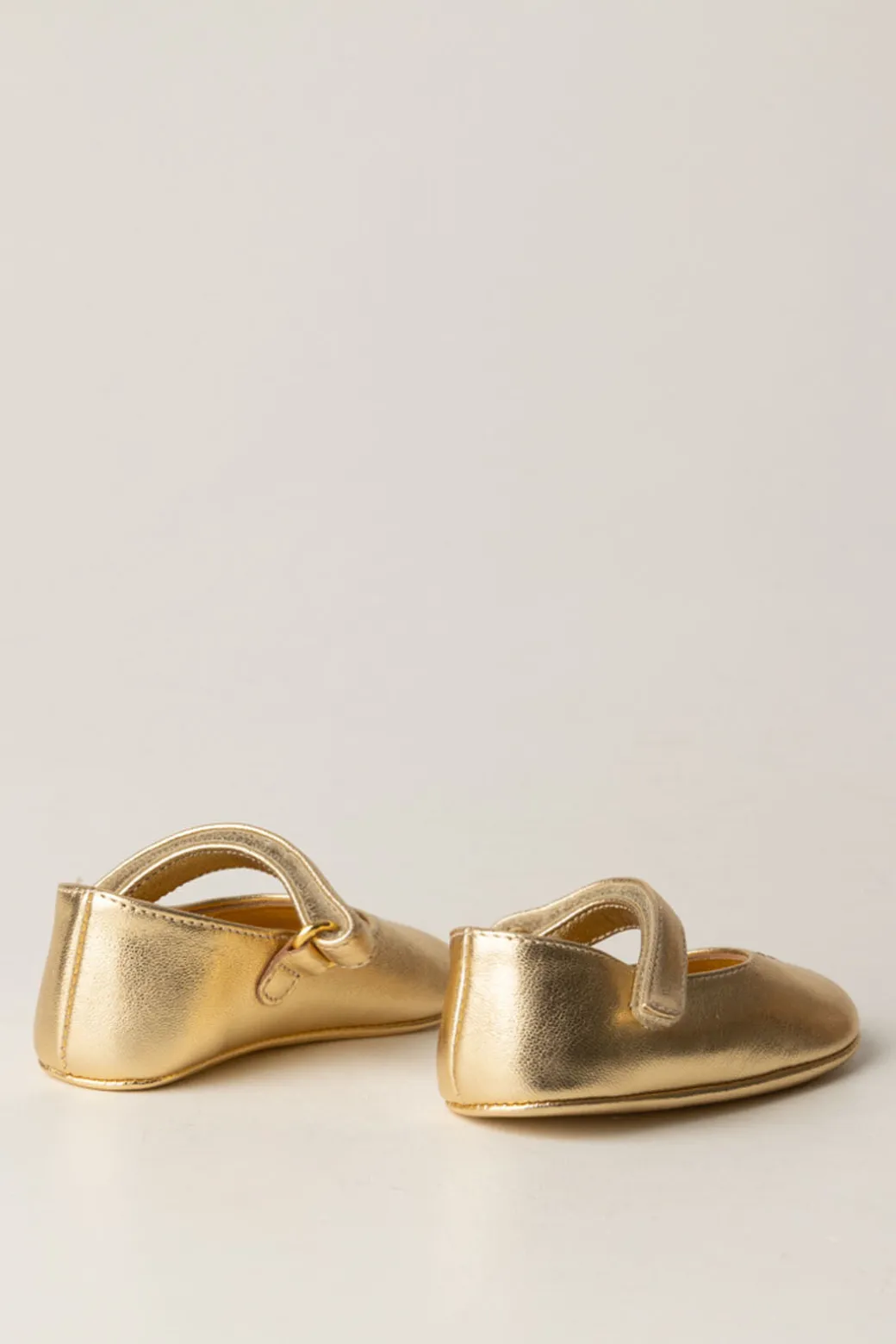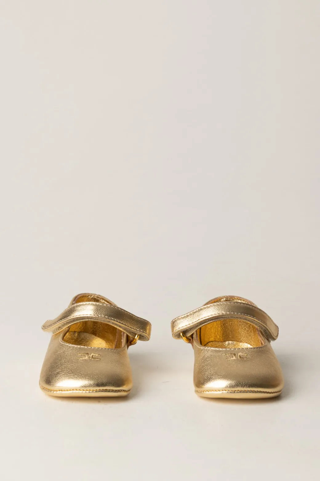 Piccoli piedini, preziose scarpette: illumina i suoi outfit con queste carinissime ballerine Elisabetta Franchi La mia Bambina con chiusura a strappo e loco CC in tinta, perfette per feste e cerimonie di stagione.