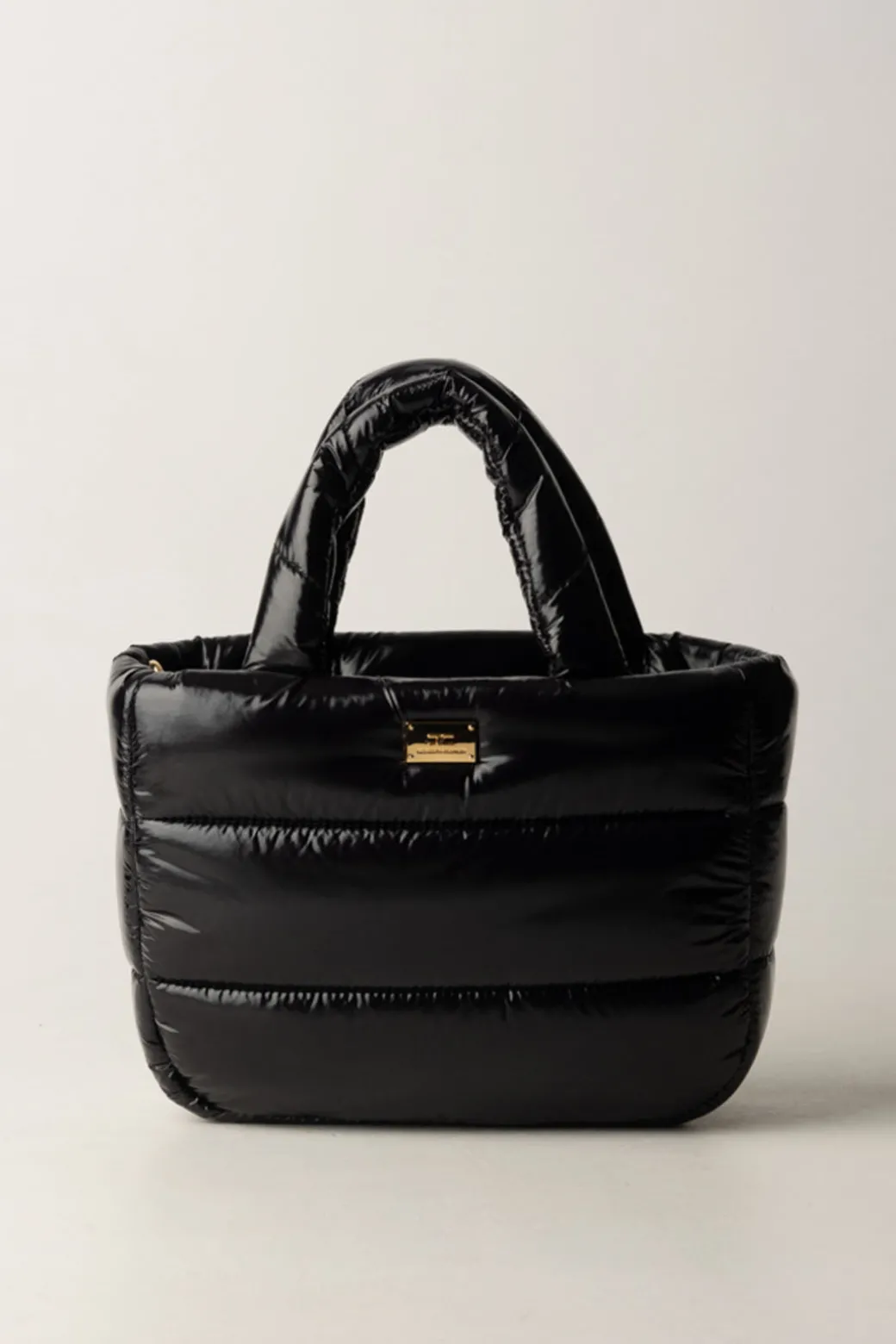 Borsa Elisabetta Franchi La mia Bambina per completare al meglio gli outfit della tua girl. Imbottita e rivestita in nylon, può essere portata a mano o indossata a tracolla: sarete voi a decidere lo stile! Placchetta logo in oro sul fronte.