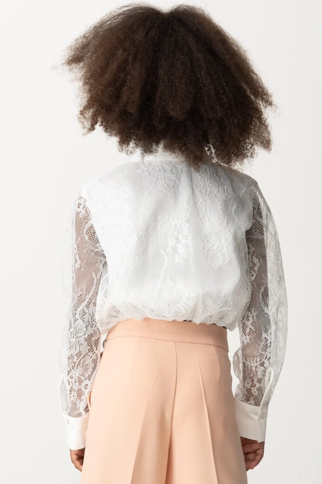 Questa elegante camicia in pizzo La mia bambina Elisabetta Franchi è un capo d’abbigliamento sofisticato e di tendenza. Realizzata con un tessuto di alta qualità, offre una sensazione di lusso e comfort. Le maniche lunghe con trasparenze aggiungono un tocco di fascino. Il logo ricamato sul taschino è un dettaglio distintivo, che esprime un senso di stile e personalità. Questa camicia farà sentire ogni bambina come una piccola diva.