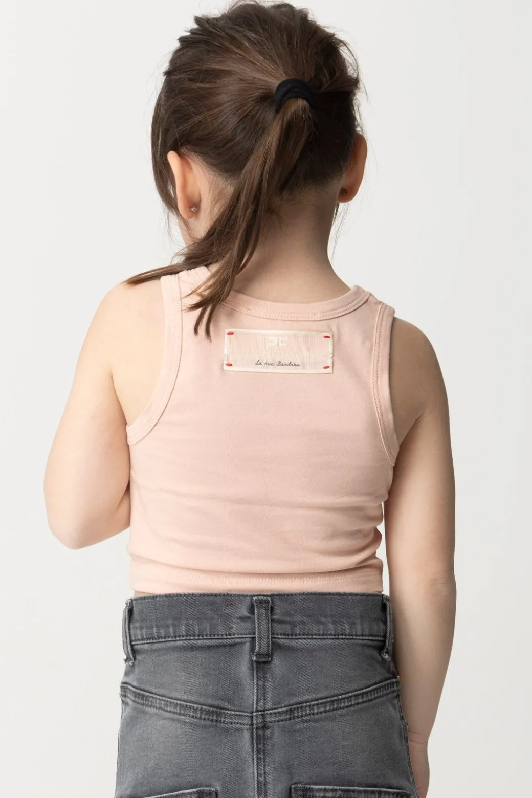 Canotta La mia bambina Elisabetta Franchi basic e super casual, che abbinerai facilmente a tutti i bottom sportivi e urban del suo guardaroba. Scollatura girocollo, troverai una graziosa etichetta logo sul retro a contrasto di colore.