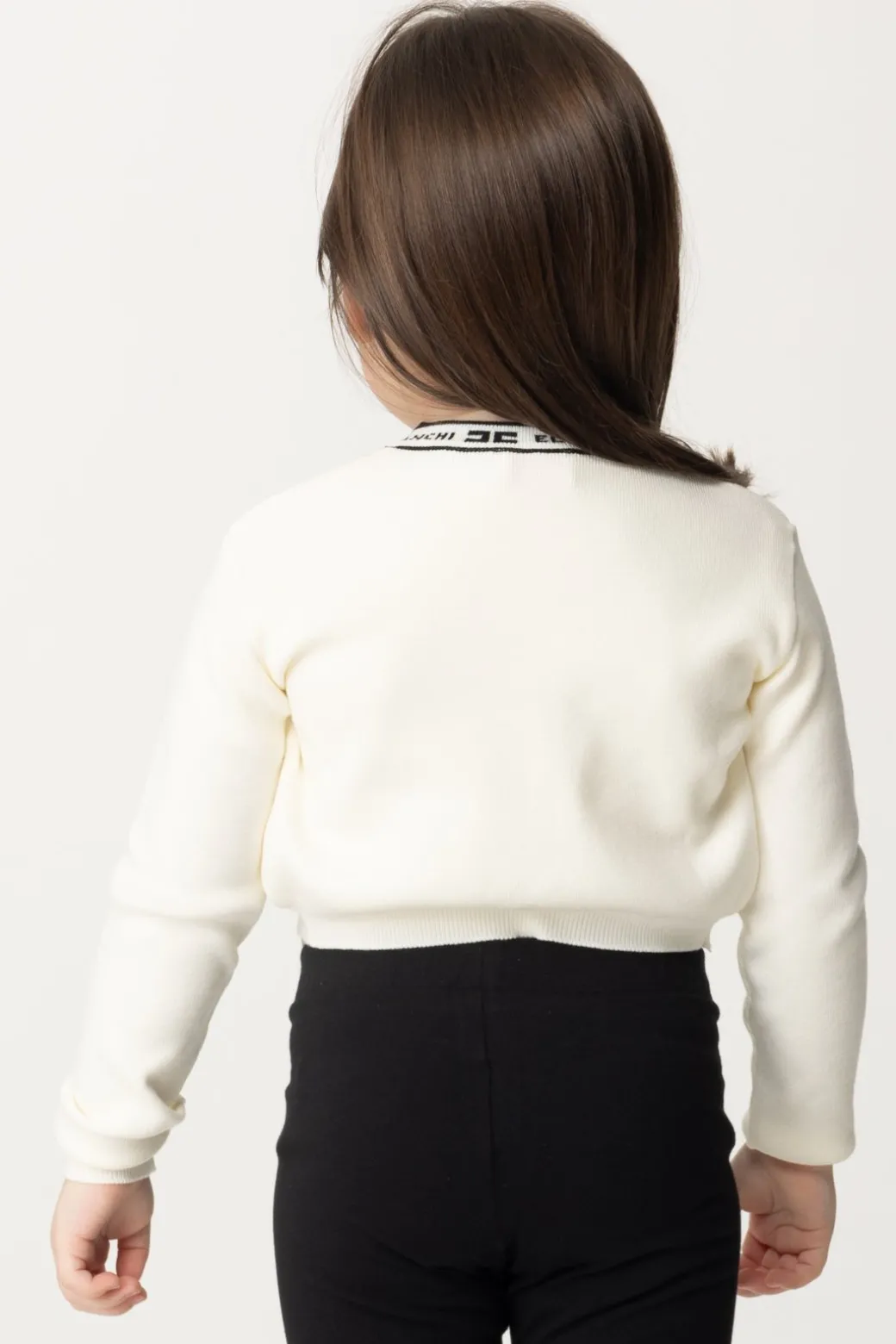 Cardigan Elisabetta Franchi La mia Bambina caratterizzato da una banda logata a contrasto che percorre i profili e il girocollo, creando un richiamo con altri pezzi della collezione baby. Un capo versatile, che si adatta facilmente a look eleganti quanto casual: una risorsa per tutta la stagione!
