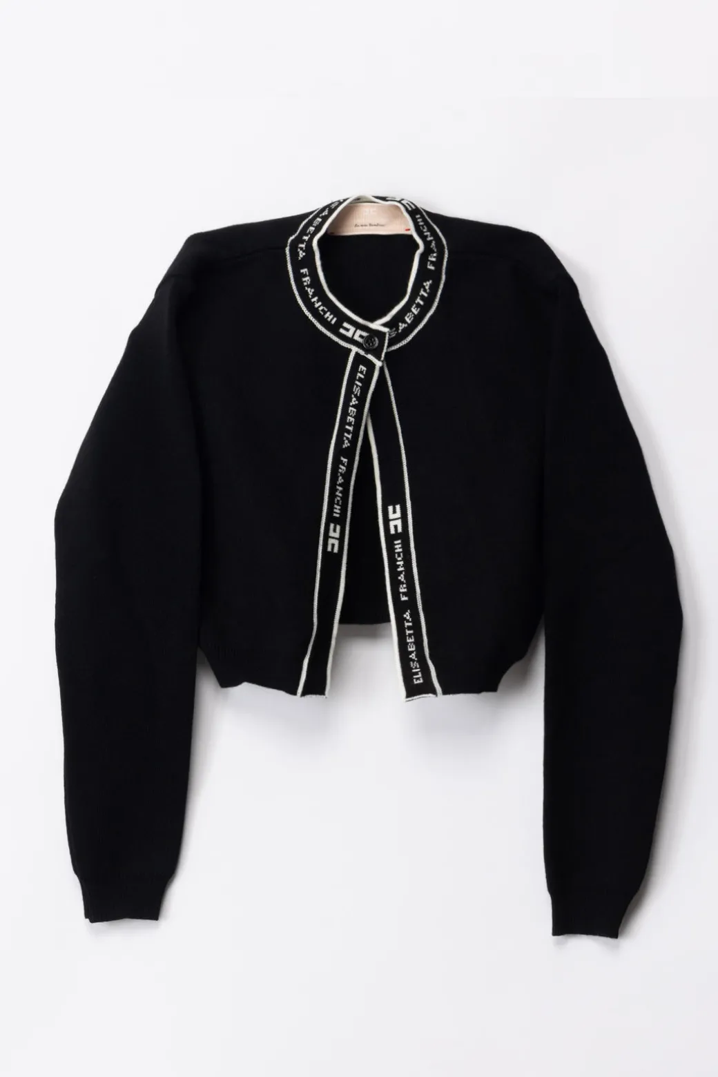 Cardigan Elisabetta Franchi La mia Bambina caratterizzato da una banda logata a contrasto che percorre i profili e il girocollo, creando un richiamo con altri pezzi della collezione baby. Un capo versatile, che si adatta facilmente a look eleganti quanto casual: una risorsa per tutta la stagione!