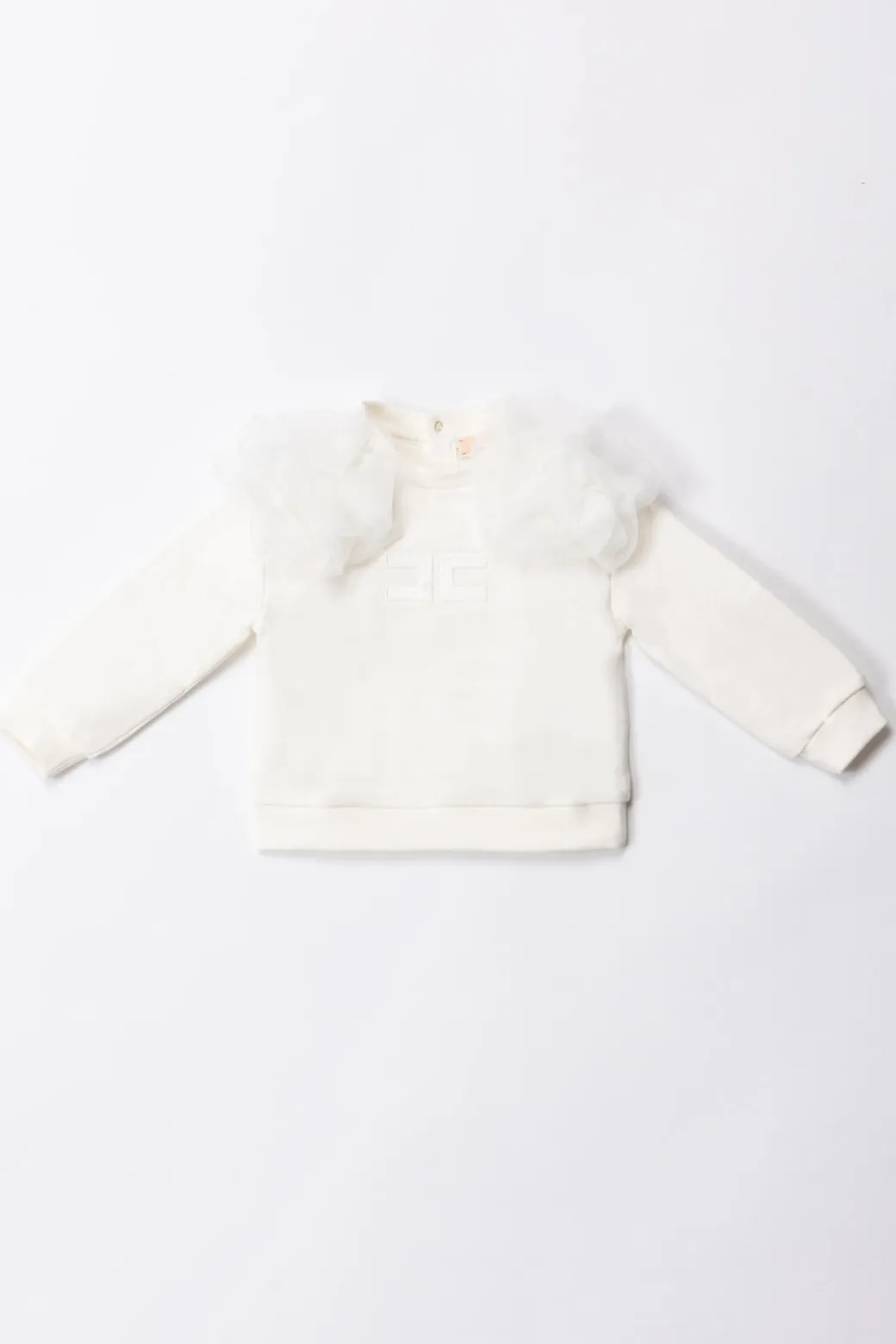 Felpa Elisabetta Franchi la mia bambina perfetta per quei look sportivi ma sempre alla moda! A renderla speciale non è solo il suo tessuto comodo e confortevole, bensì l’inserto in tulle voluminoso su entrambe le spalle che aggiunge un tocco giocoso e allegro all’intero look. Da abbinare a jeans per completare il mood sporty-chic o a gonnelline per un mood più romantico e dolce!