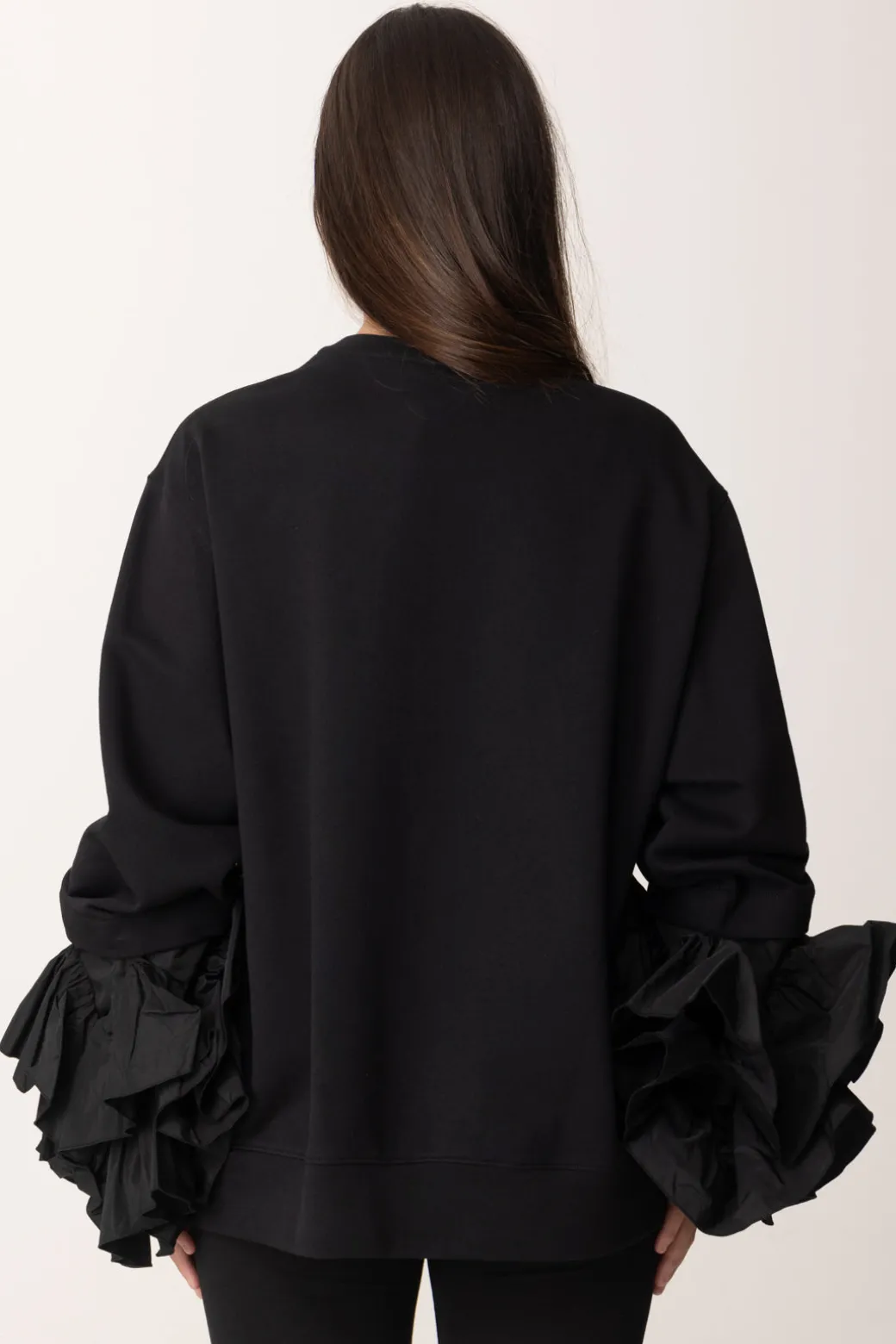 Comoda ma sempre con stile: con questa felpa Elisabetta Franchi La mia bambina non puoi sbagliare! Fit comodo e girocollo, a renderla unica nel suo genere sono le ruches in taffetà applicate ai polsi, che aggiungono un imprevedibile tocco di eleganza. Abbinala con i jeans per dargli un tocco chic, e, viceversa, al un pantalone palazzo o a zampa per renderli più cool.