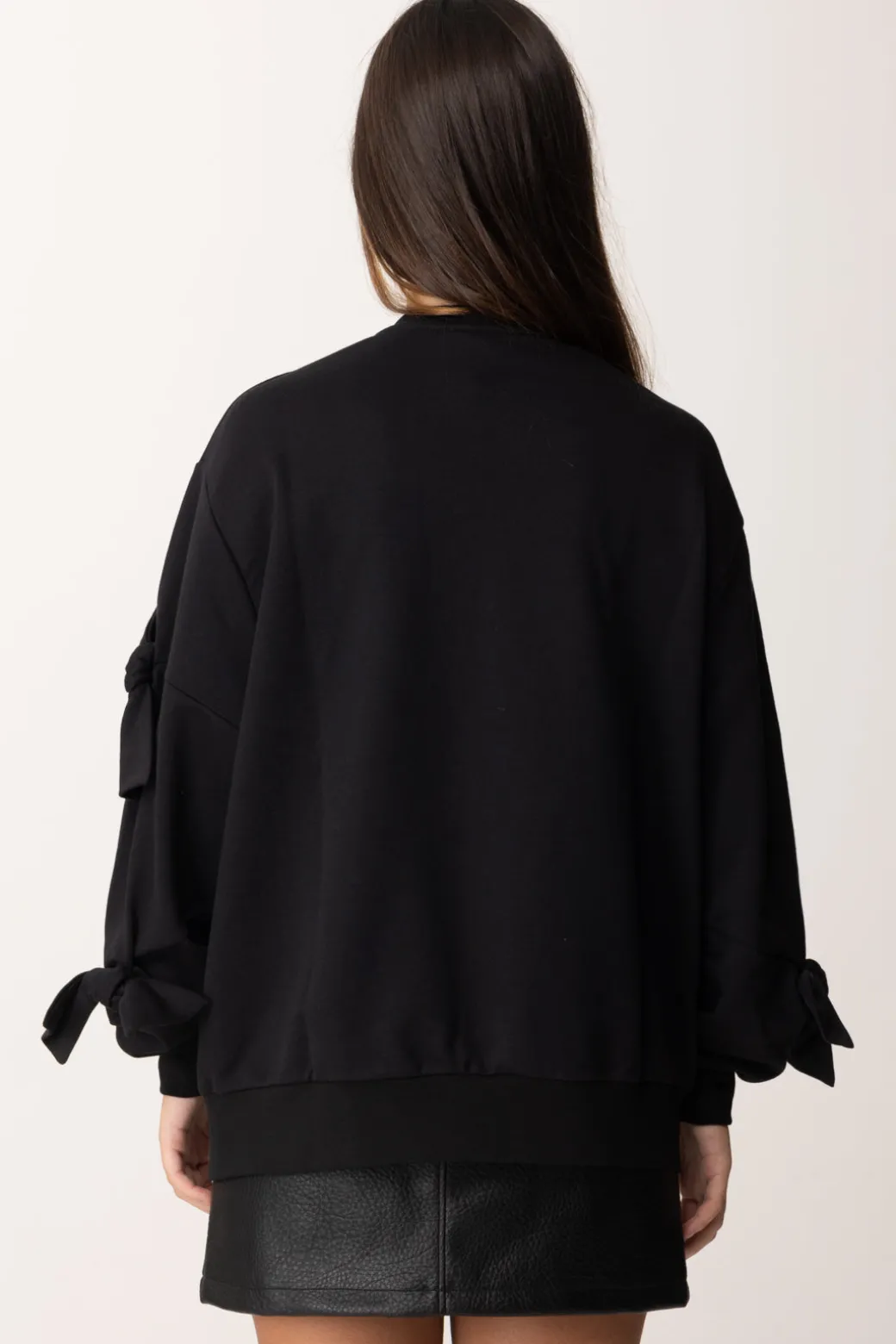 Comoda ma sempre con stile: con questa felpa Elisabetta Franchi La mia bambina non puoi sbagliare! Fit comodo, girocollo e orli rifiniti a costine, la abbelliscono dei fiocchi posti lungo le maniche che richiamano altri pezzi della collezione. Perfetta per tantissimi bottom, dai joggers più sportivi a un pantalone palazzo a cui dare un twist più cool.