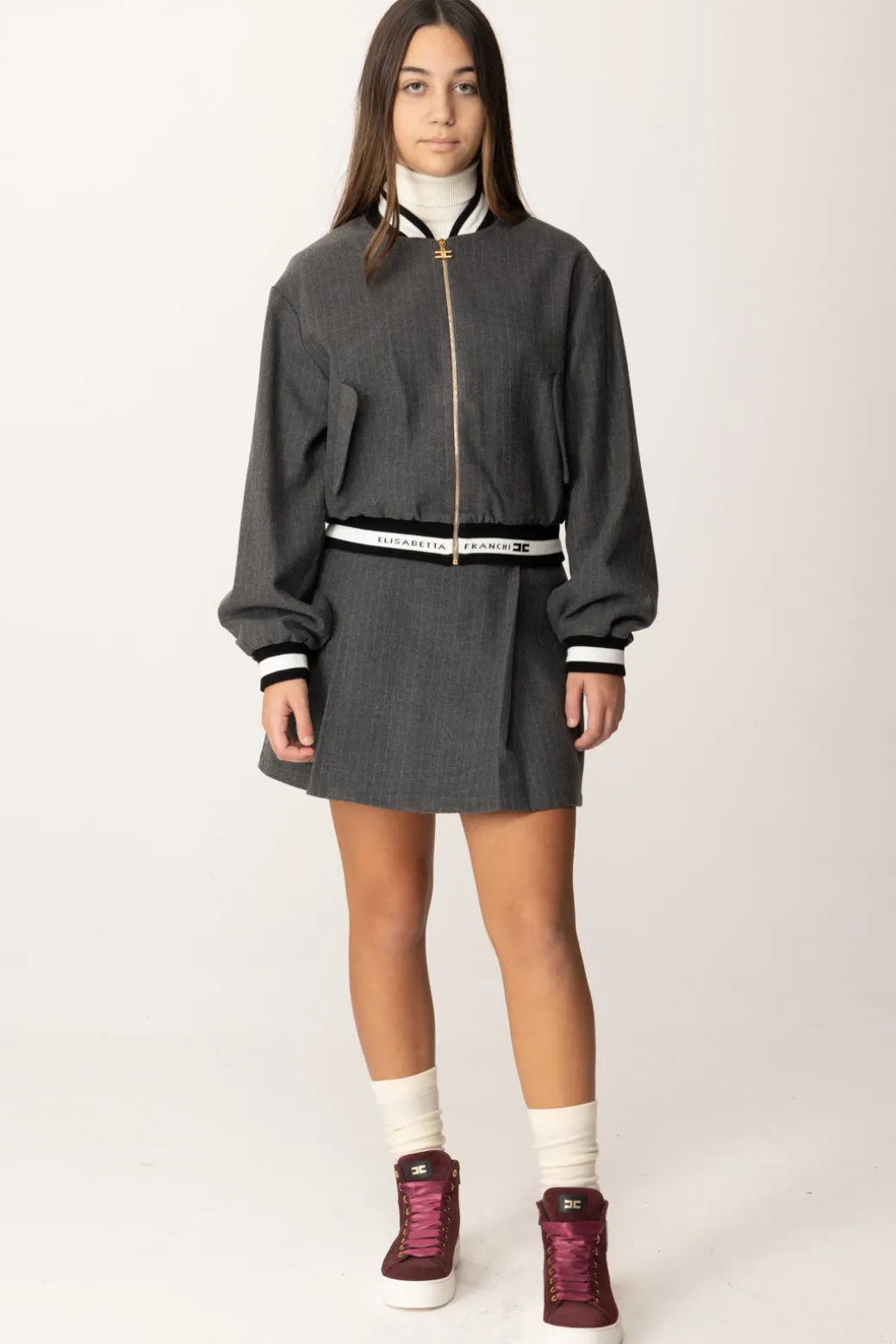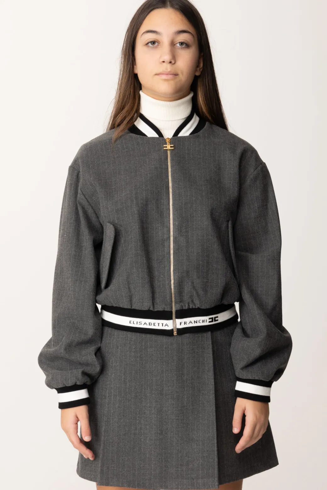 Il gessato reinterpretato e reso ancora più glamour per la young lady di casa: una bellissima giacca Elisabetta Franchi La mia Bambina che combina un classico dell’eleganza con accenti urban, dati dalla chiusura full zip con tiretto logato e gli orli in banda elasticizzata e logata in vita. Un capo perfetto per realizzare un completo con la gonna con le stesse caratteristiche, ma anche da indossare su denim e joggers.