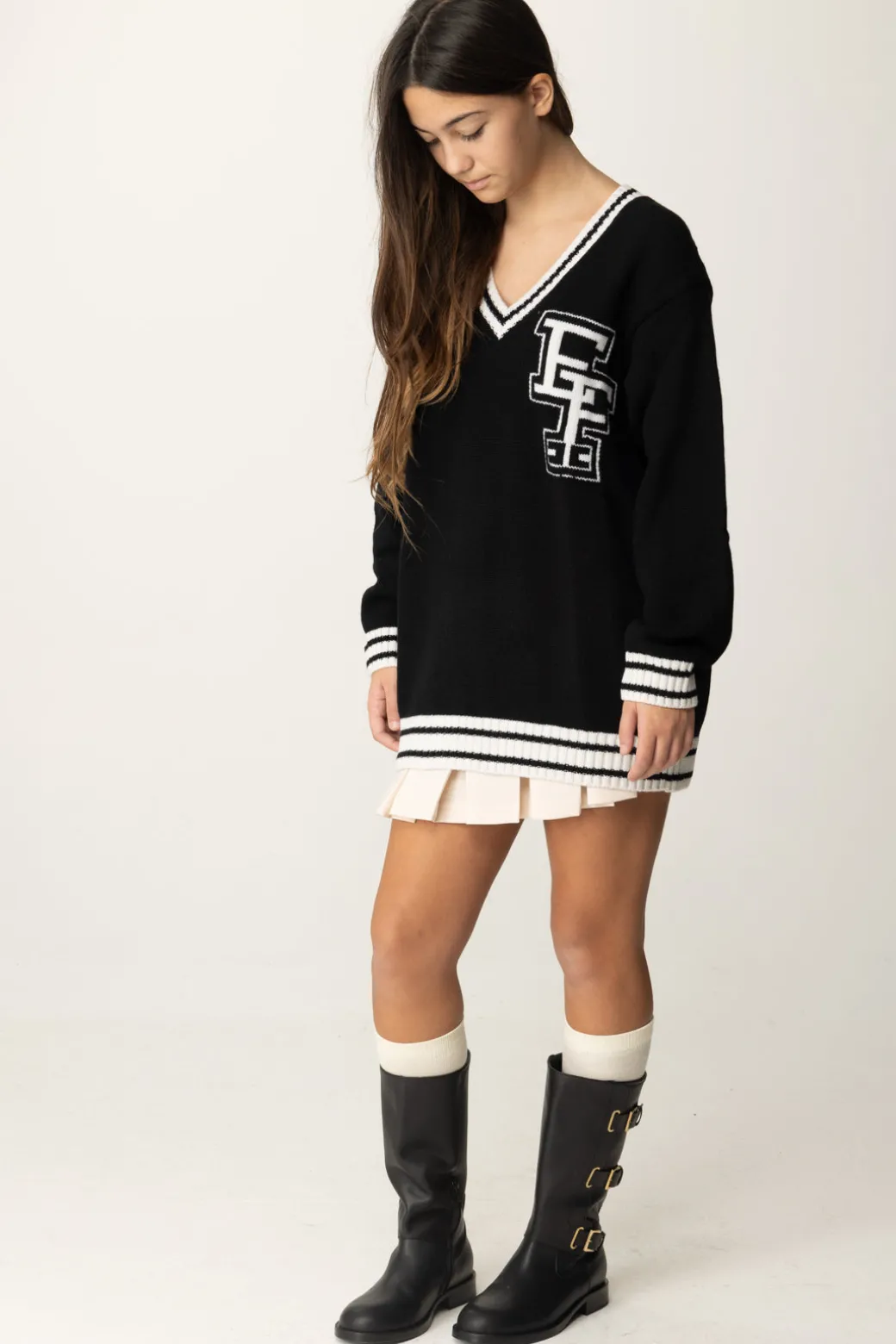 Perfettamente a metà strada tra l’elegante e il casual, perfettamente in linea con l’ispirazione college della collezione, questo maglione Elisabetta Franchi La mia bambina è a pieno titolo un must-have di stagione! Realizzato in lana merinos, sarà bellissimo da indossare sia a solo che in combinazione con camicette per un risultato super chic ad ogni età.
