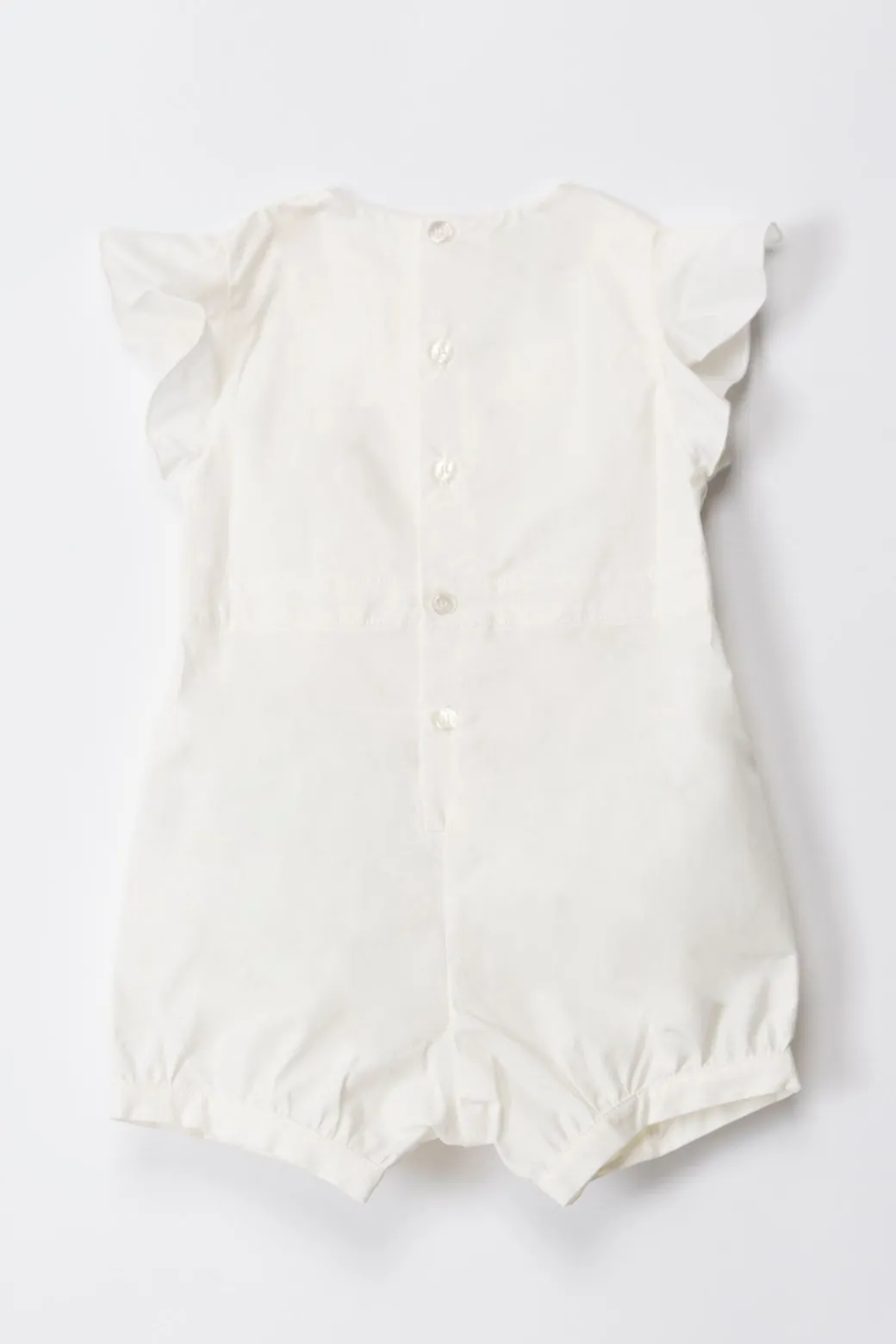 Dolcissime maniche volante e sfiziose pieghe sul fronte rendono questo pagliaccetto La mia bambina Elisabetta Franchi irresistibile, oltre che ad essere un pratico one-piece per le bimbe in estate, grazie anche al taglio corto della gamba che garantisce comodità e freschezza. Realizzato in cotone con logo embossed sul petto, diventa elegante all’occorenza se completato con le giuste scarpine e calzette.