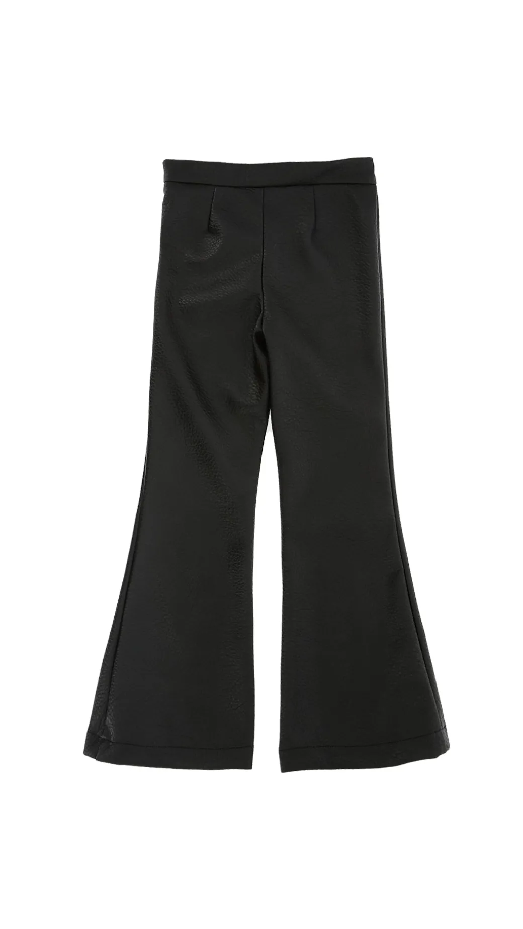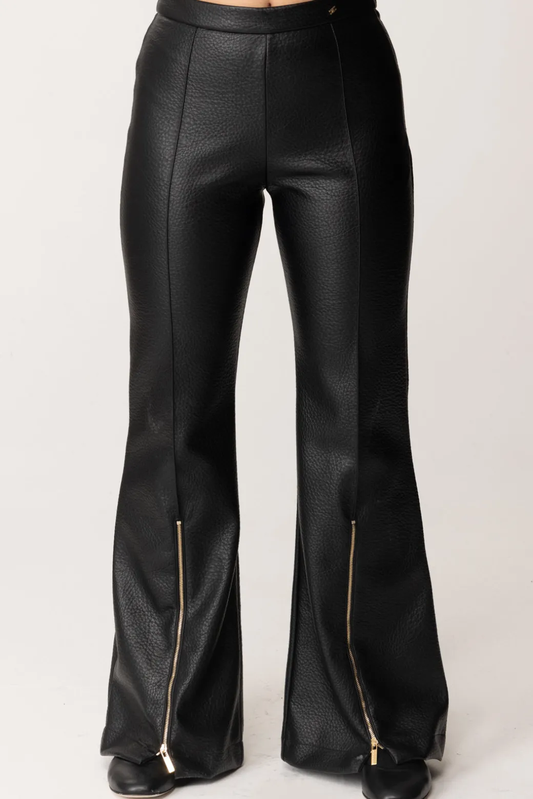 Pantaloni Elisabetta Franchi La mia bambina così belli che farai fatica a credere che siano per bimba! Realizzati in materiale sintetico effetto pelle, il design a zampa è completato da due zip frontali che li rendono ancora più cool e grintosi. Un capo perfetto per outfit da party e da sera, da completare con altrettanto spirito glam.