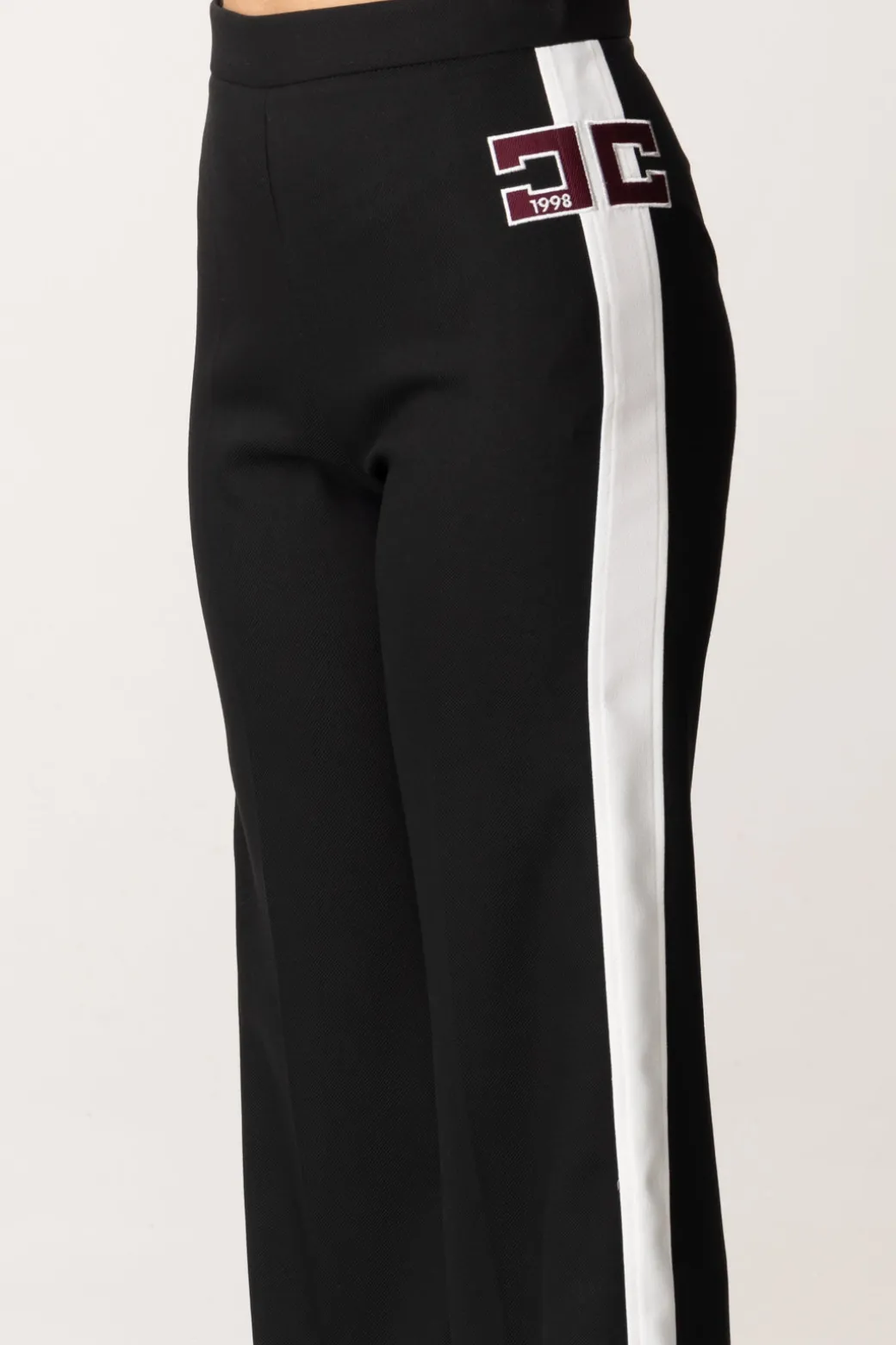 Sai che nella collezione c’è una giacca con cui puoi creare un completo a partire da questi pantaloni Elisabetta Franchi La mia bambina? Eleganti e contemporanei, con l’inserto a contrasto di colore e il logo maxi sul fianco, un capo esclusivo perfetto in set con il capospalla, ma anche da solo con t-shirt con logo, bluse e camicette della collezione.