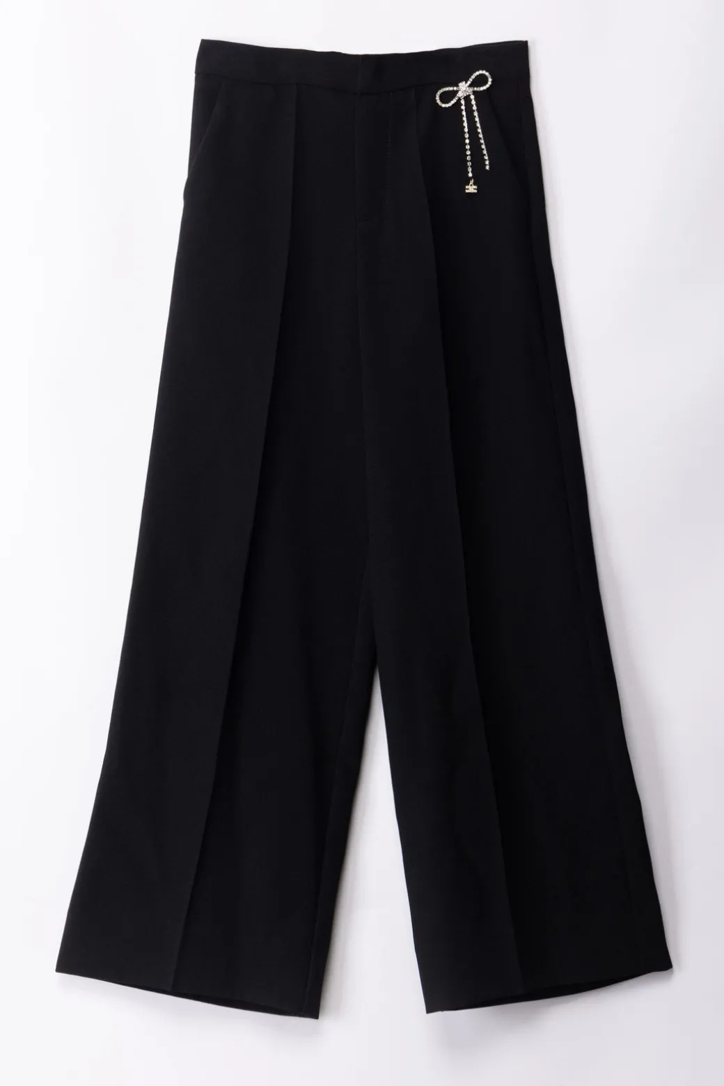 Questi pantaloni a palazzo La mia bambina Elisabetta Franchi sono un capo d’abbigliamento che esprime eleganza e stile. Il fiocco laterale in vita, ricoperto di strass, aggiunge un tocco di brillantezza e femminilità. Il pendente logato con la doppia C è un dettaglio particolare del brand che esprime un senso di lusso e raffinatezza. Questi pantaloni faranno sentire ogni bambina come una piccola star della moda.