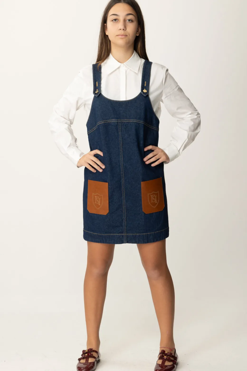 Quanto ci piacciono le salopette addosso alle bimbe e alle signorinelle? Sfiziose e deliziose, super accurate in ogni dettaglio specialmente se si tratta di una salopette Elisabetta Franchi La mia Bambina, definita da cuciture a contrasto di colore e tasche applicate in ecopelle con impresso il logo in versione stemma. Abbinala a maglioncini e camicette e divertiti a creare adorabili outfit da giorno come da sera.