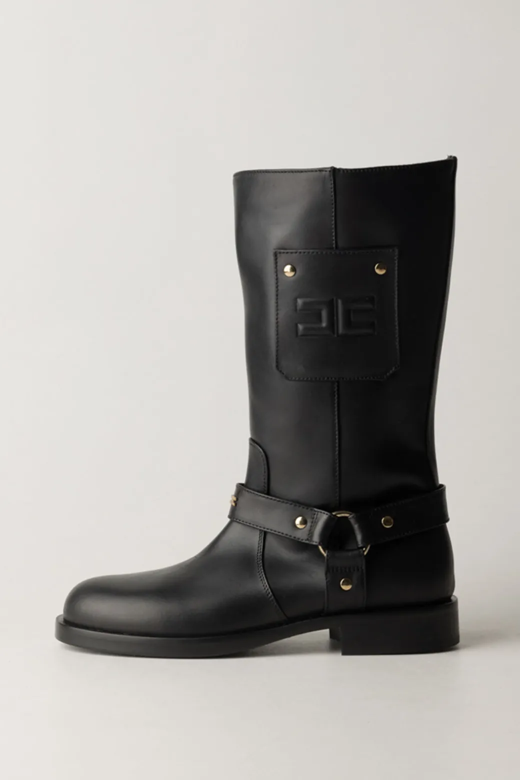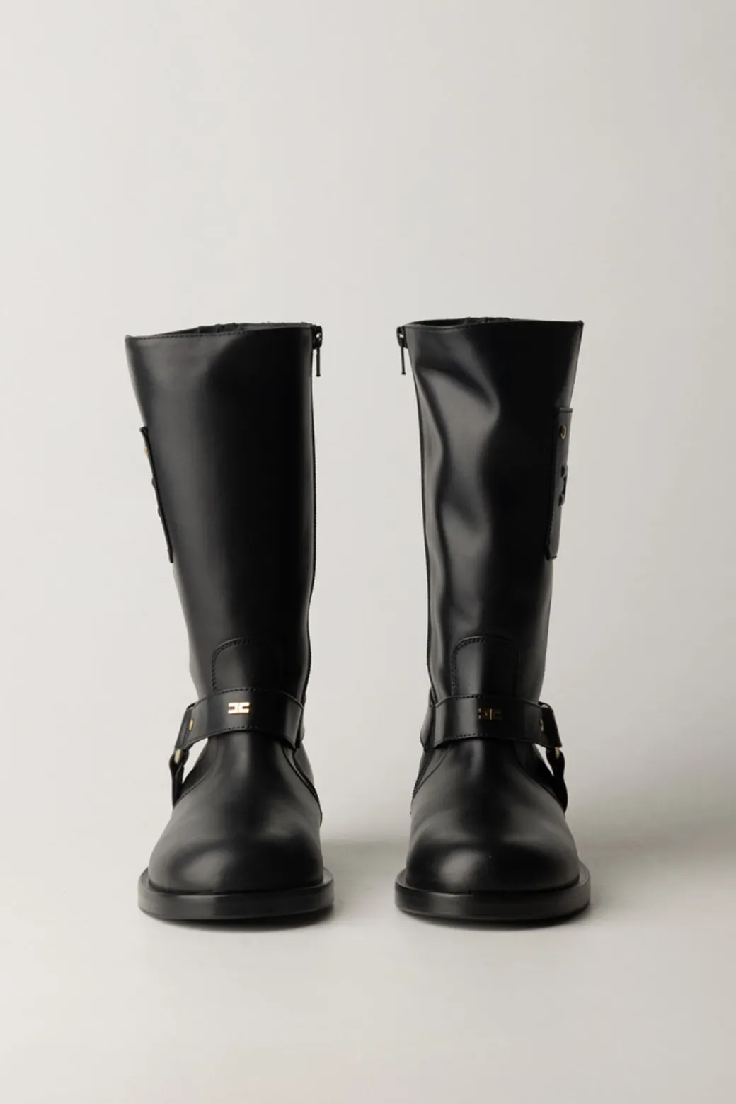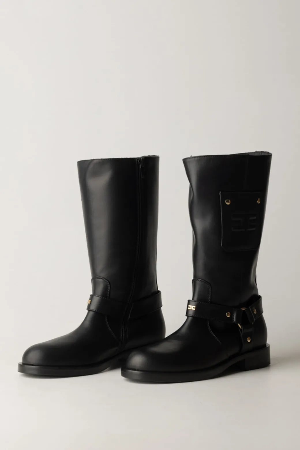 Anche un classico di questo brand non è mai classico: c’è sempre un dettaglio che li fa notare e li connette alla collezione o al mood del momento. Così vale per lo scudetto con logo impresso sui lati di questi stivali La mia bambina Elisabetta Franchi. Pelle liscia, suola in gomma, gamba larga: tutto quello che ti serve per creare outfit con calzature belle e confortevoli.
