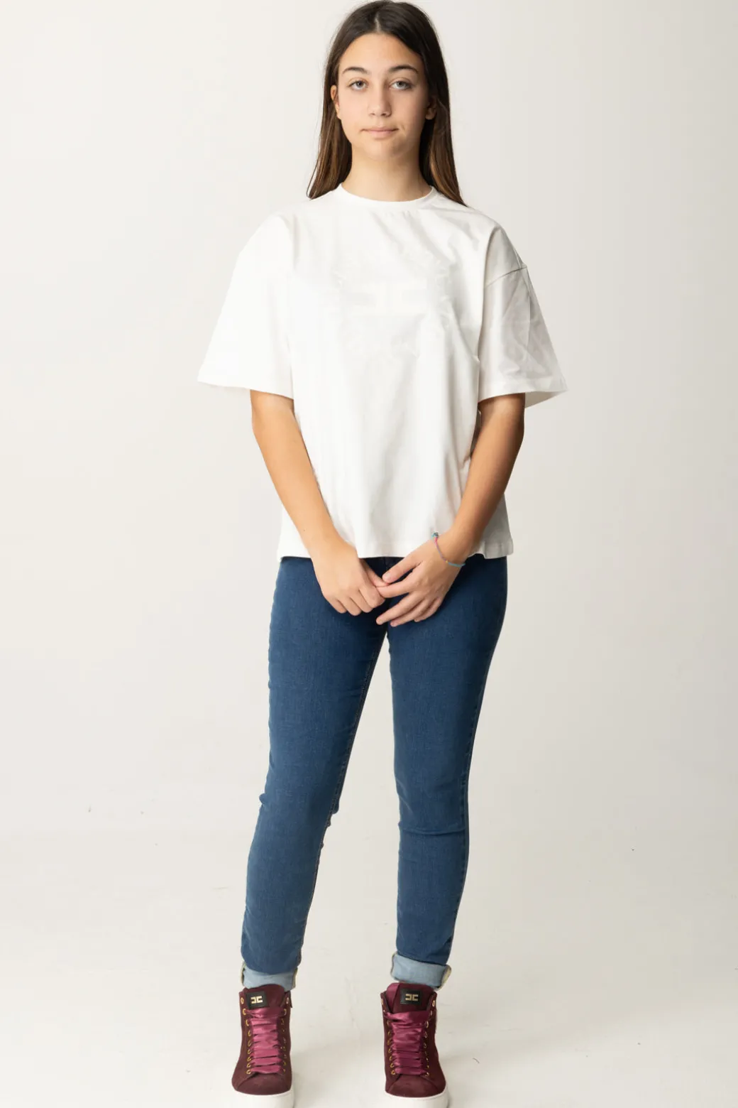 Semplice e versatile T-shirt La mia bambina Elisabetta Franchi caratterizzata dalla stampa del logo CC con lettering sul petto in tinta. Un top facile da abbinare, sia con bottom sportivi che con qualcosa di più chic, come una gonnellina a pieghe o un pantalone classico, per un look elegante ma non formale, perfetto per una bimba.