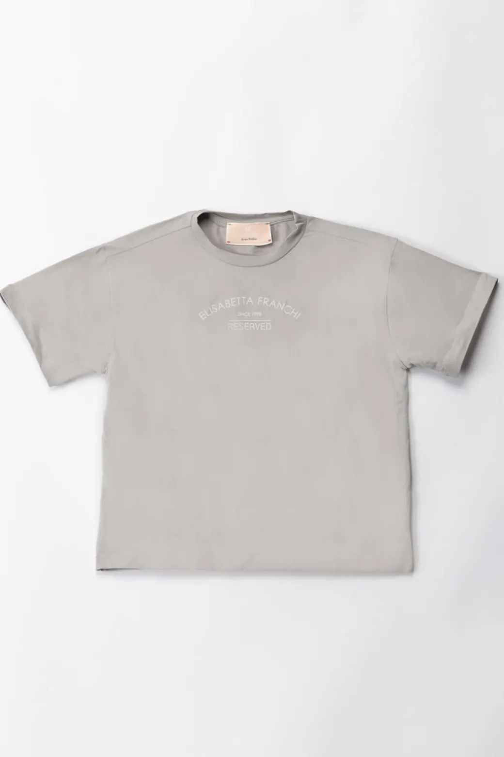 Una T-shirt Elisabetta Franchi Bambina dallo stile minimal impreziosito da una stampa logo lettering a contrasto, perfetta per esprimere personalità e originalità nel look quotidiano..