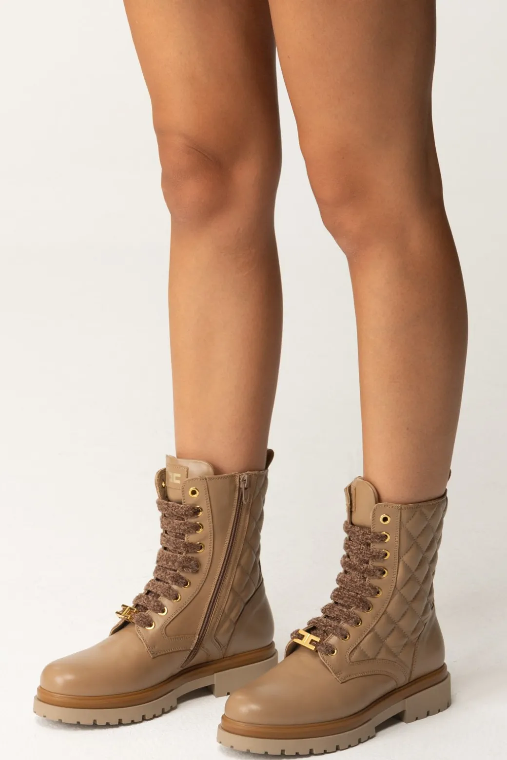 Deliziosi tronchetti La mia bambina Elisabetta Franchi pieni di dettagli di stile: dal logo infilato nell’allacciatura, all’etichetta con CC sul frontalino, per finire con la lavorazione trapuntata sui lati. Realizzati in pelle con suola in gomma, una scarpa evergreen pratica da indossare sotto pantaloni cargo o flare ma bellissima soprattutto da tenere a vista!