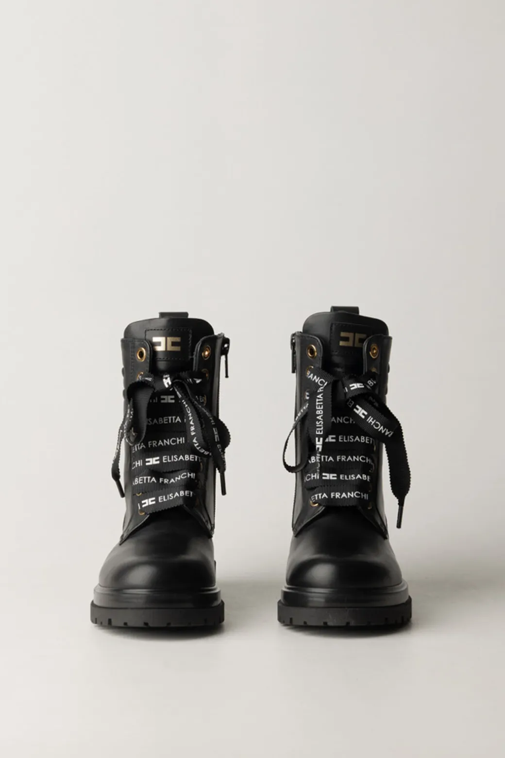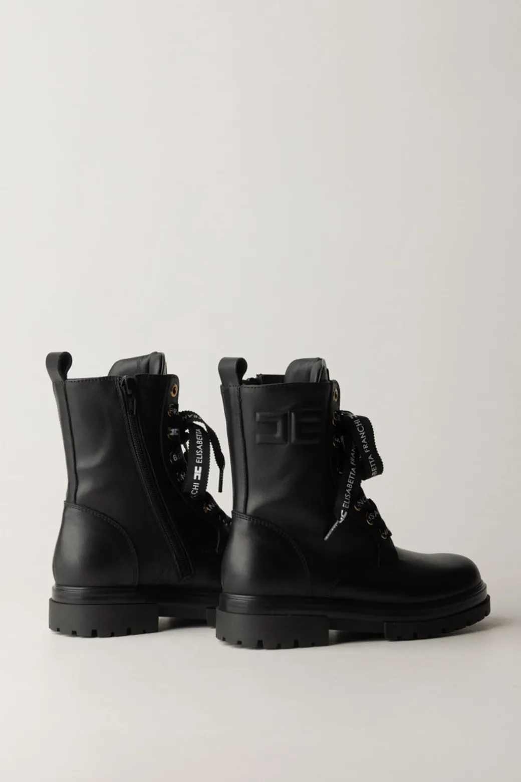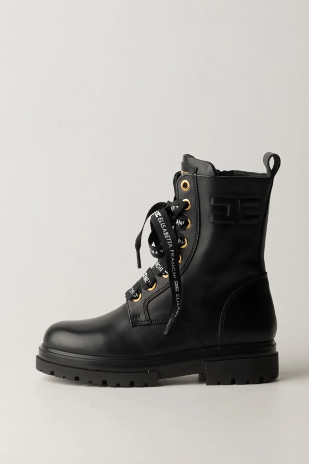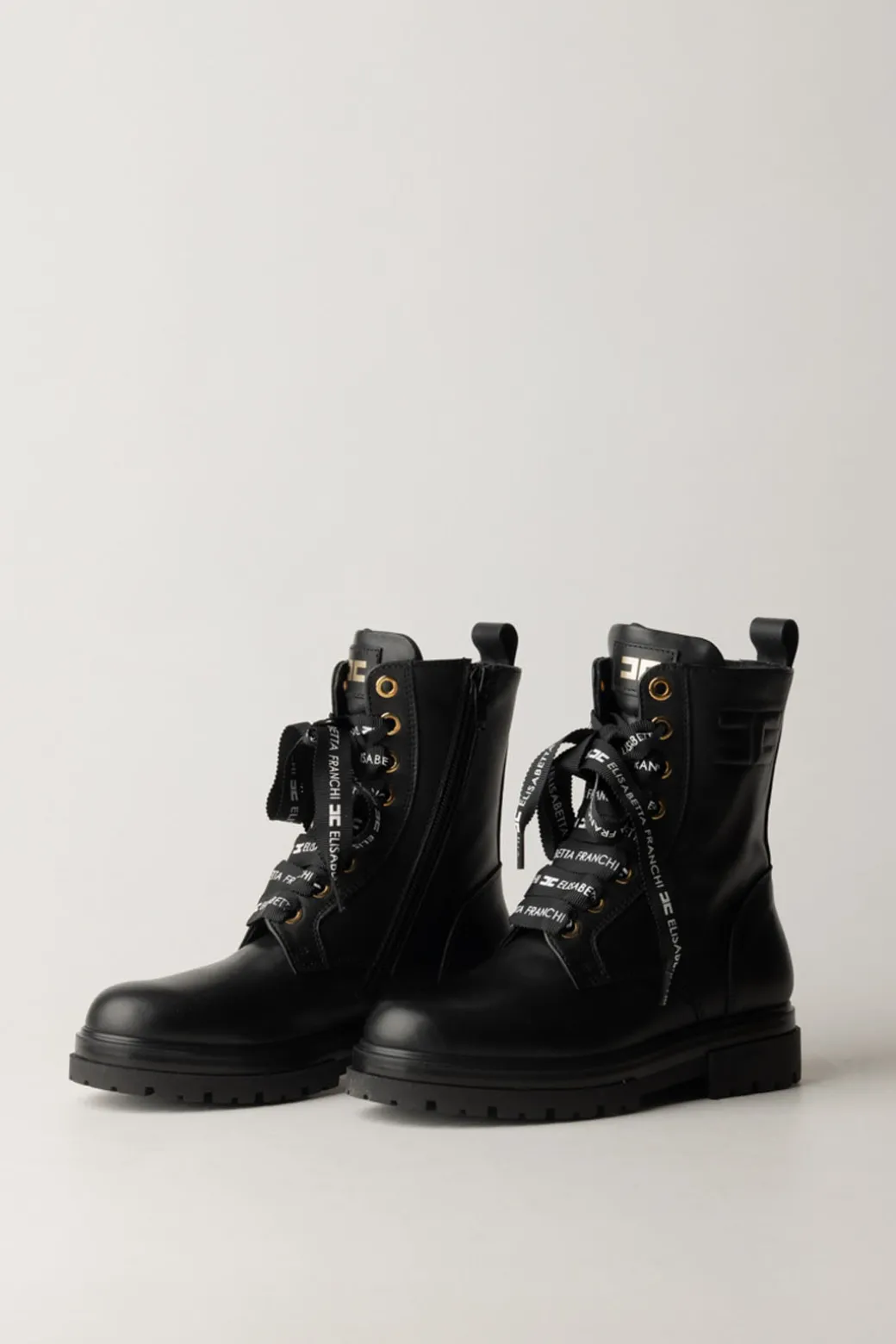 Super stilosi tronchetti La mia bambina Elisabetta Franchi che spezzano la semplicità del modello con i lacci logati con lettering e il logo CC trapuntato sul lato. Crea outfit con gonne scampanate o pantaloncini per tenerli ben a vista, ma testa anche la loro versatilità con bottom ampi o svasati o con skinny da infilare all’interno.