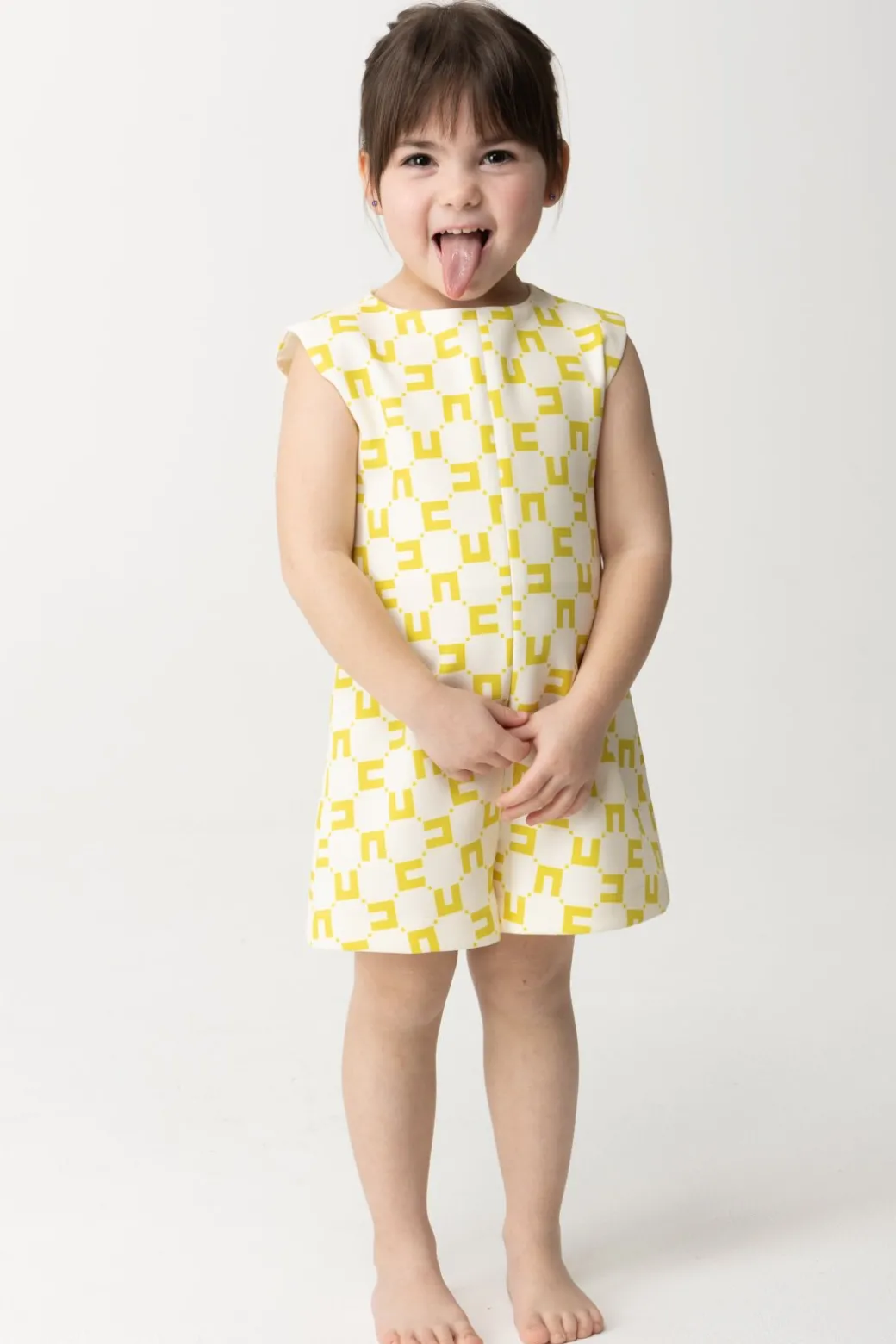 Gambe al vento con questa tuta corta La mia Bambina Elisabetta Franchi, con la sua ipnotica stampa logo cubica che caratterizza tutta la collezione. Smanicata, la puoi abbinare a camicette e collant per sfruttarla anche in altre stagioni oltre che in estate: sarà sfiziosissima sempre e comunque!