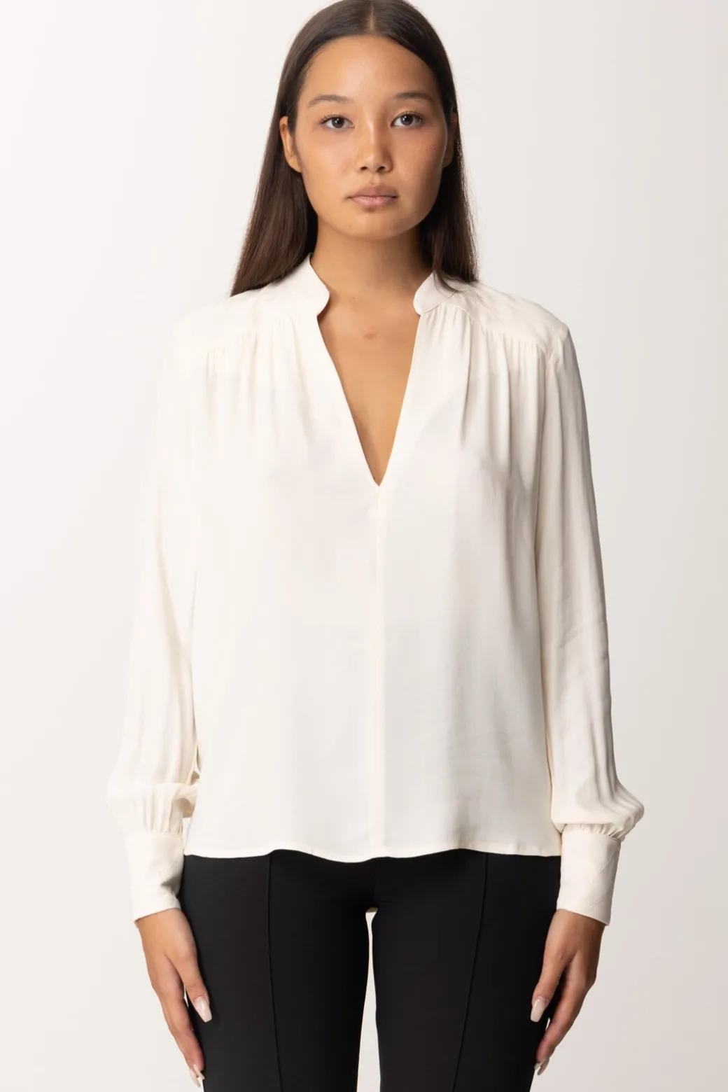 Un classico per i tuoi outfit, un vero passe-par-tout: una blusa Elisabetta Franchi in georgette caratterizzata dal classico fit ampio e morbido, profondo scllo a v e lievi arricciature al petto e ai polsini. La sua particolarità? Gli inserti su spalle e polsini con ricamo righe e logo in tono.