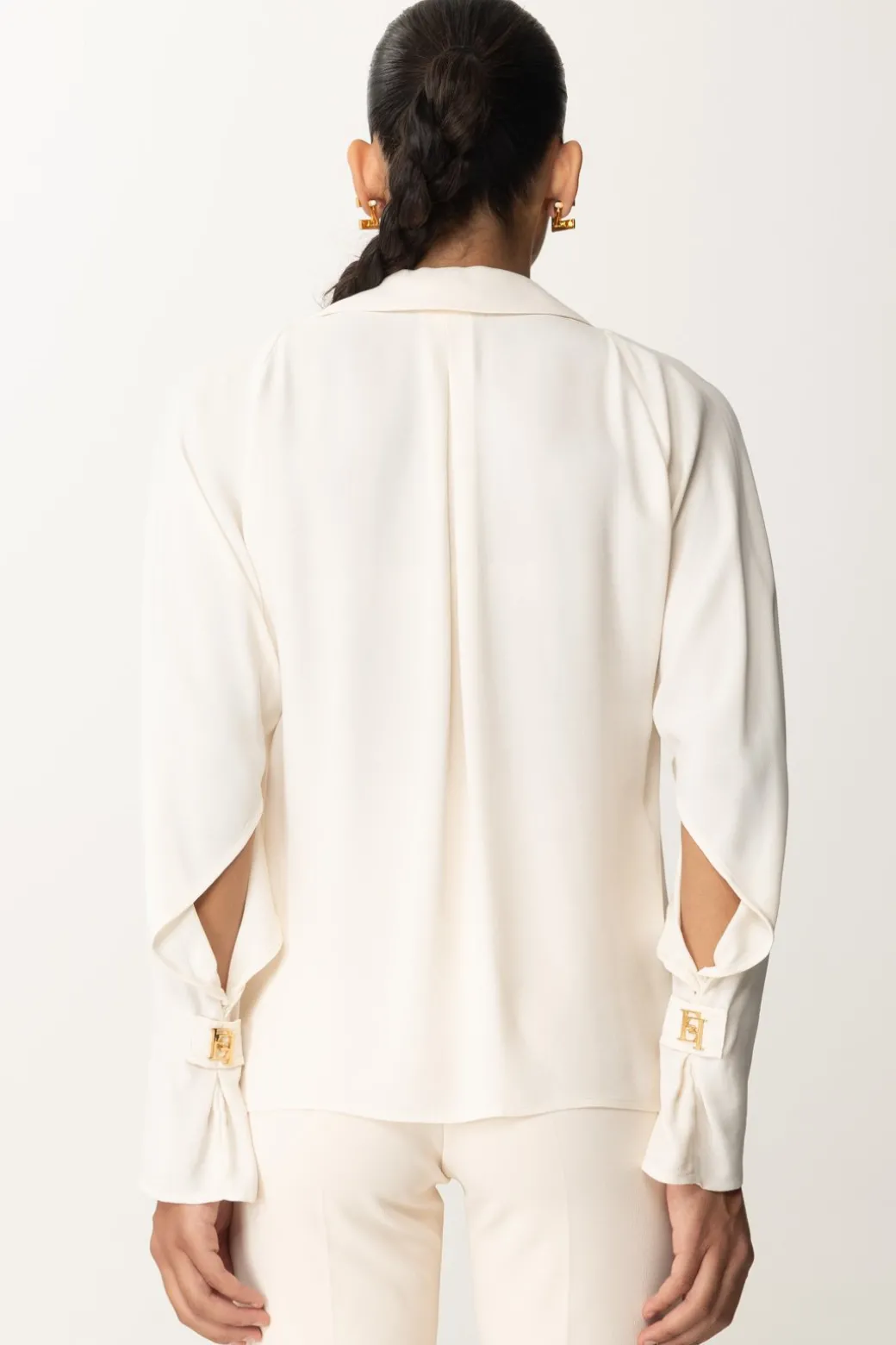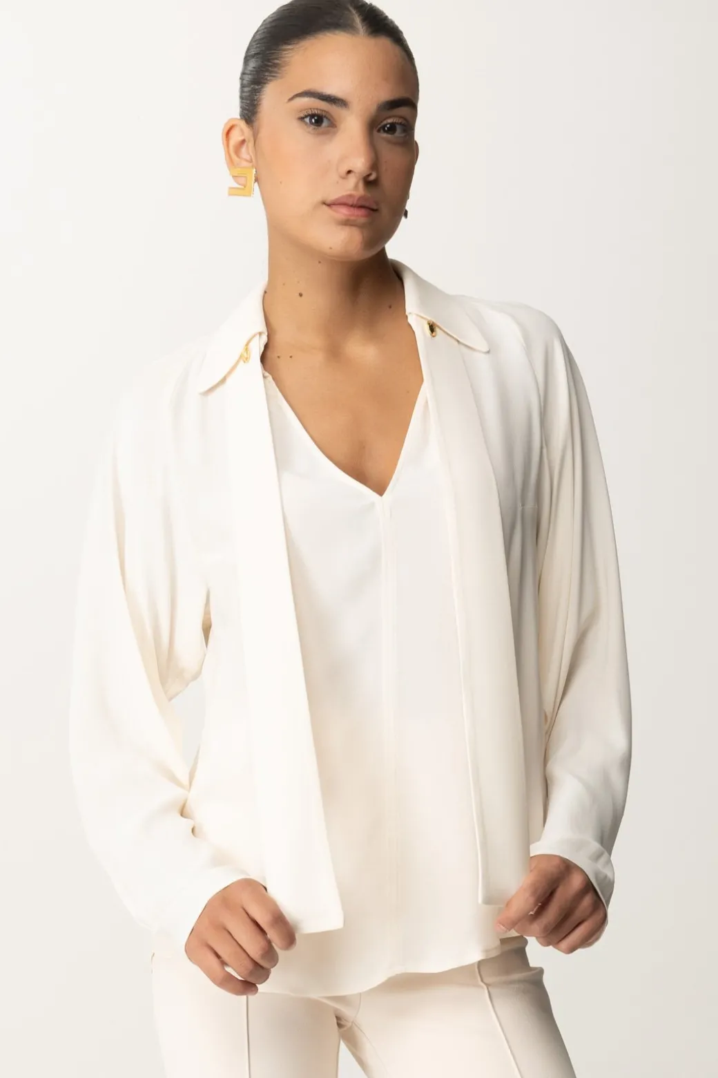 Estremamente versatile, altrettanto chic: ti innamorerai di questa blusa Elisabetta Franchi, con il suo volume morbido che si appoggia sulle tue forme e le esalta con discrezione. Il colletto è accompagnato dalla presenza di un foulard, e altrettanto originali sono le maniche, che si aprono nella loro lunghezza con un effetto volant. Perfetta con bottom eleganti a cui aggiungere un po’ di voulme e movimento, specialmente se a vita alta.