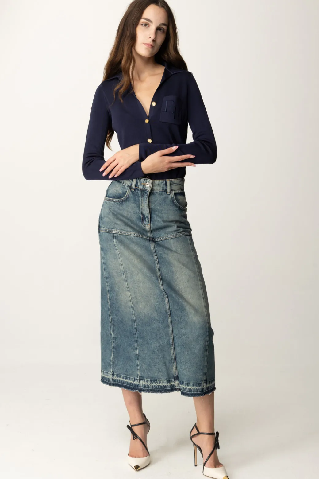 Un capo versatile e comodo, questo body Elisabetta Franchi realizzato in viscosa lucida, è caratterizzato da colletto e un abbottonatura che ricorda una camicia. Ideale per look stratificati e smart-casual. Il taglio aderente e i dettagli gold lo rendono perfetto per essere indossato con pantaloni o gonne a vita alta.