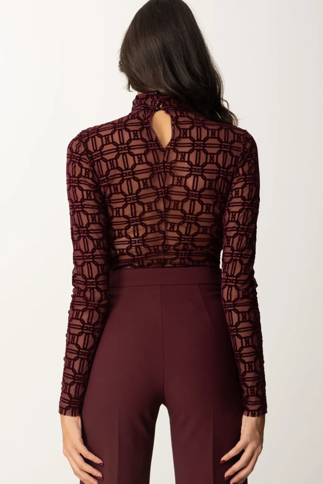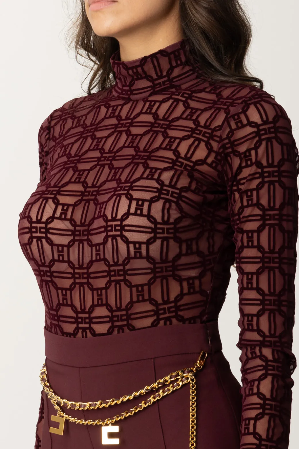 L’effetto see-through di questo body Elisabetta Franchi in tulle si combina con la stampa flock all-over per darti un top sexy e di classe al tempo stesso. Perfetto da indossare come top in combinazione a bottom con la stessa caratteristica, ma anche per rendere più glamour i tuoi denim e più femminili i tuoi outfit formali. Maniche unghe e collo alto, piccolo scollo a goccia sul retro.
