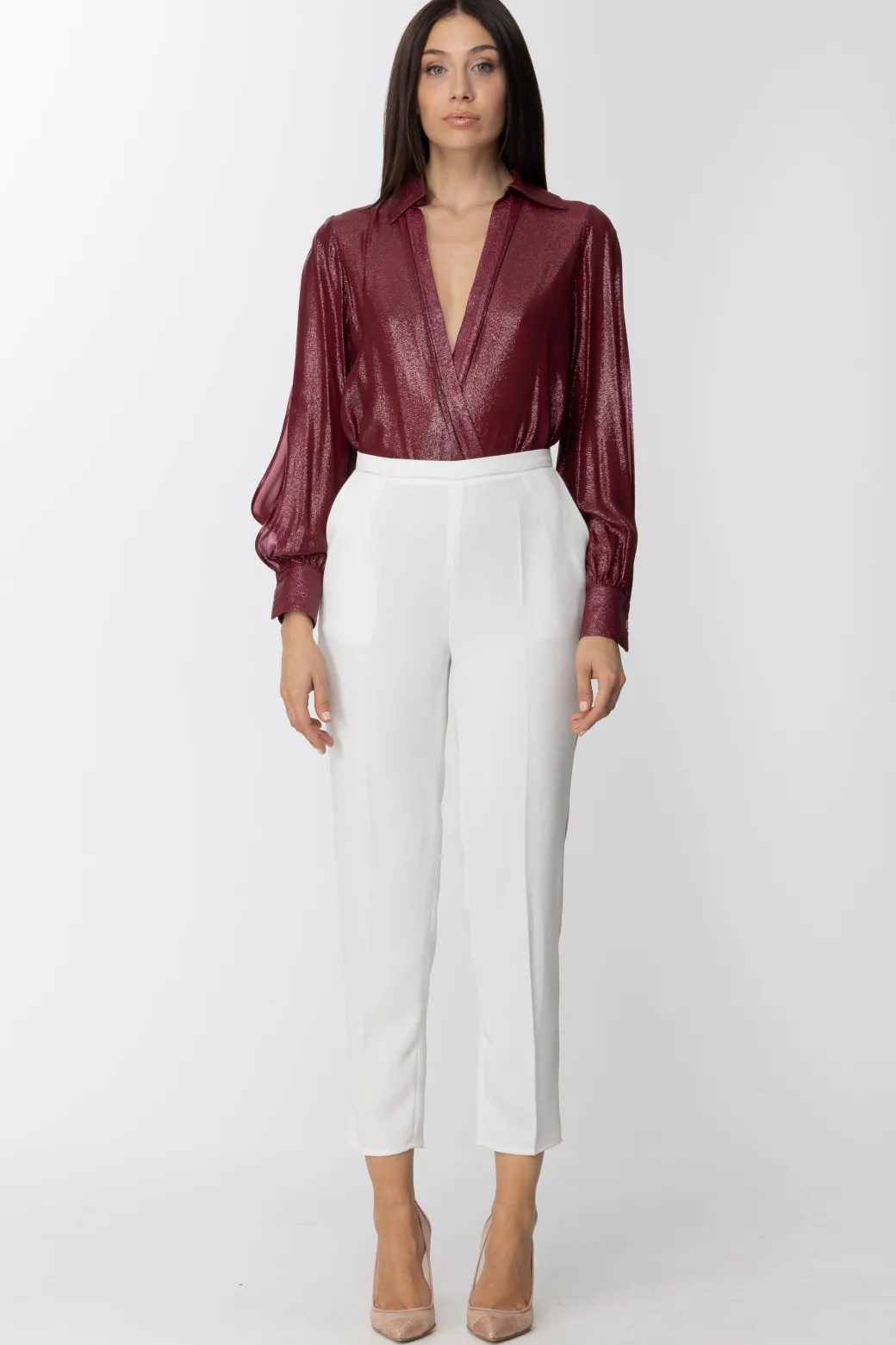 Scegli un capo che ti copra con discrezione, come questo body Elisabetta Franchi, che richiama il design di una camicia a maniche lunghe con scollo a incrocio: potrai osare con gli abbinamenti, come gonne dalle fantasie accese e originalissimi bijoux.