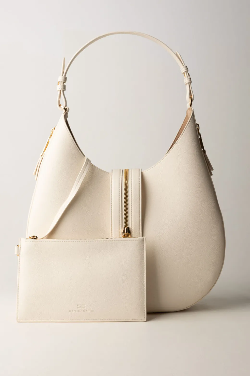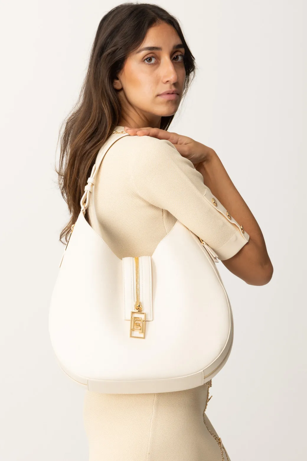 Spaziosa e moderna: questa borsa Hobo Elisabetta Franchi è la borsa perfetta per chi ama essere versatile senza mai rinunciare allo stile. Perfetta per un look da lavoro o semplicemente per portare con te ogni tua piccola necessità! Realizzata in simil pelle e caratterizzata da una chiusura con zip logata in oro. Abbinala a un look casual con jeans a vita alta, maglia e cappotto in lana per completare.