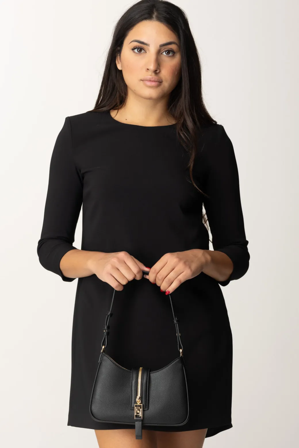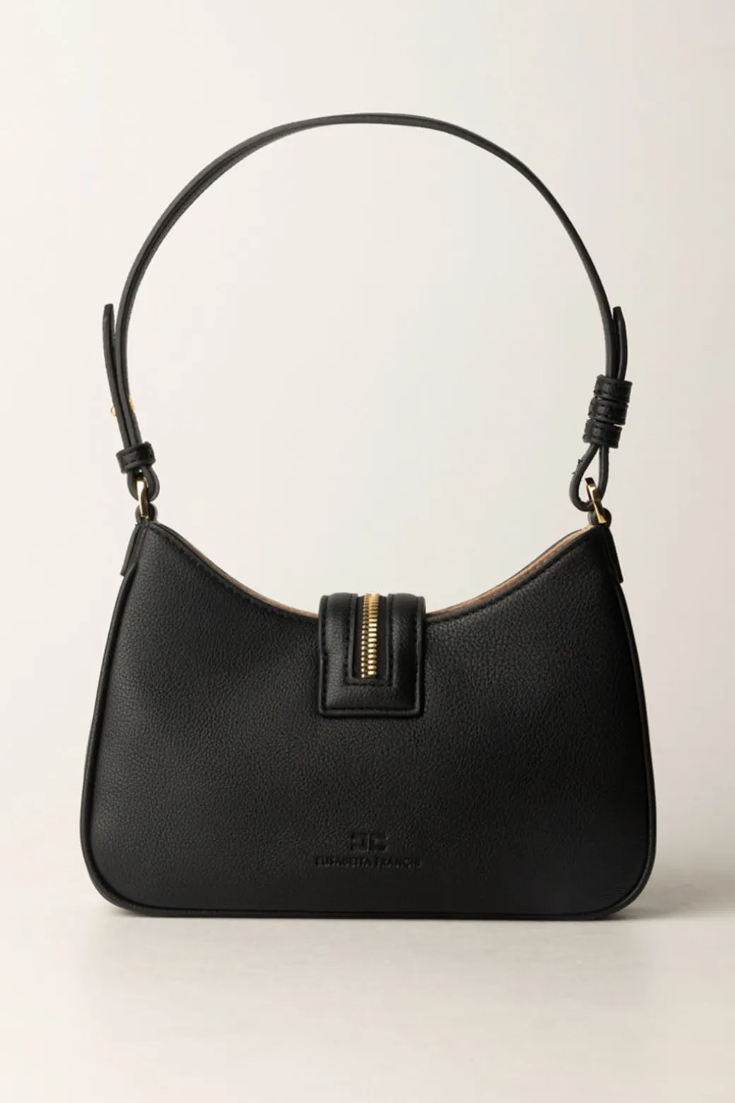 Piccola e moderna: questa borsa Hobo Elisabetta Franchi è compatta e perfetta dal mattino alla sera. Realizzata in simil pelle e caratterizzata da una chiusura con zip logata in oro. Abbinala a un look casual con jeans a vita alta, camicia e trench, oppure a un vestito midi per un tocco più femminile.