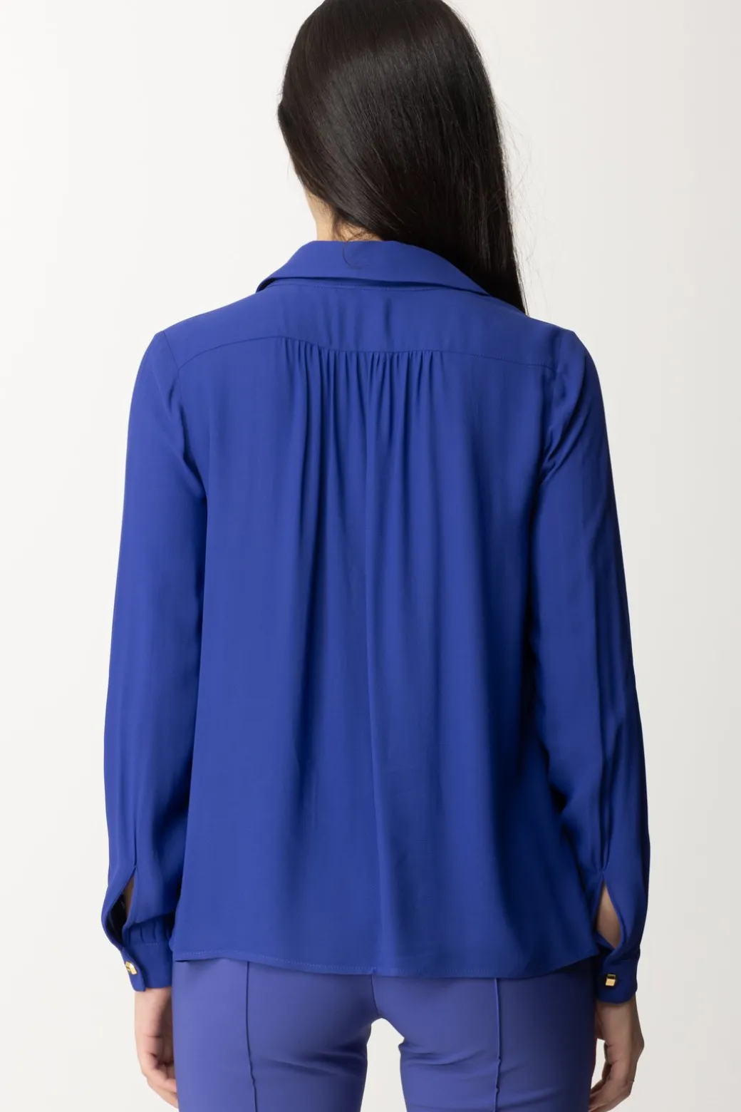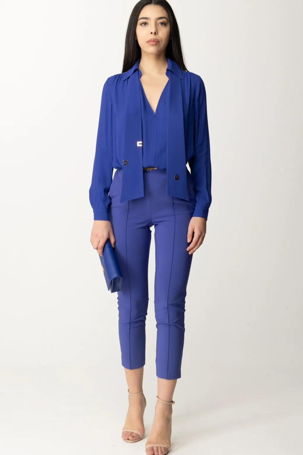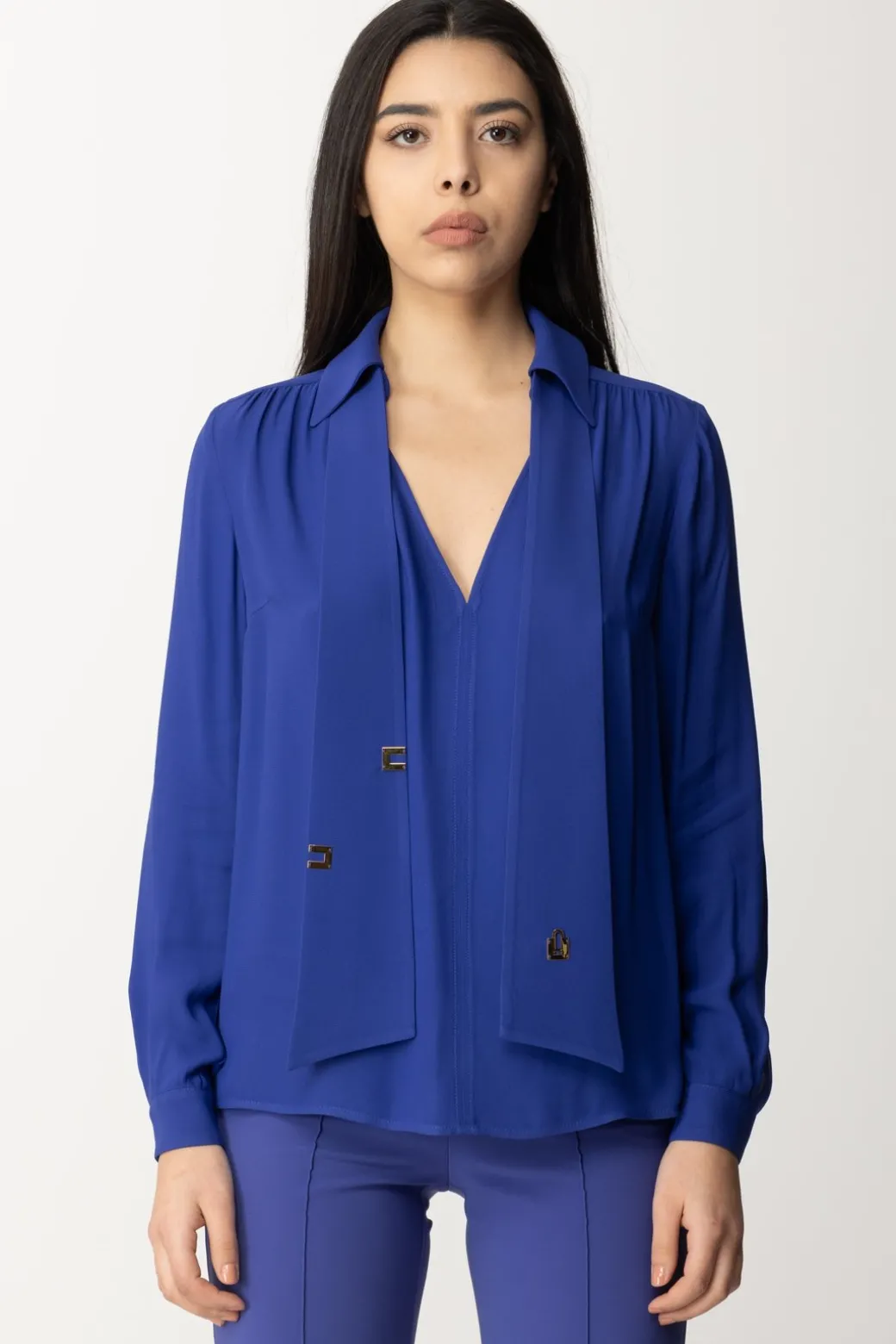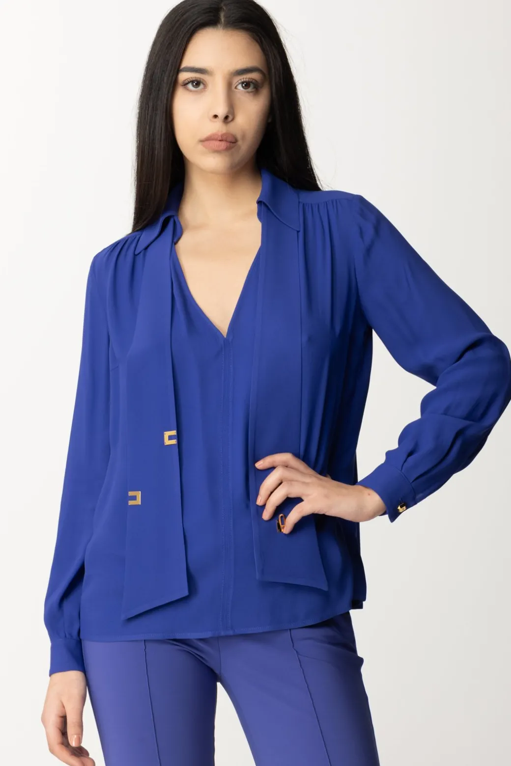 Camicia Elisabetta Franchi che rompe le righe della classicità arricchendo il colletto con l’aggiunta di un foulard caratterizzato da placche oro logate: un top che si farà notare in qualunque abbinamento per la sua allure ladylike ed elegantissima nella sua semplicità. Volumi ampi che la faranno adagiare morbidamente sulle tue forme.